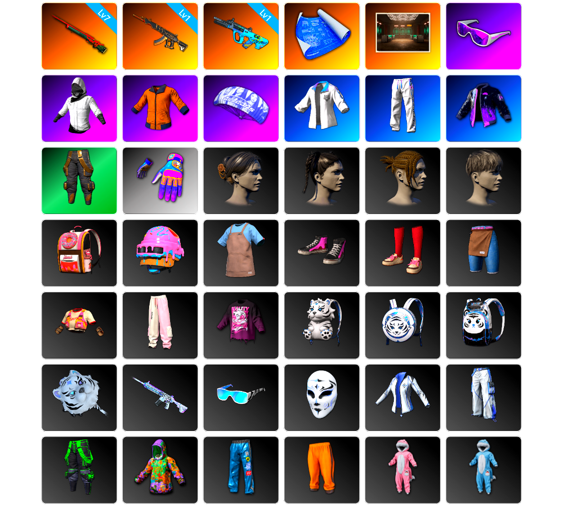 编号WJ110皮肤:7级孙悟空M24 1级妖魔之触ACE 1级GD-AUG 张图纸 交易所接待室 滑雪镜 白战神 黄东 降落伞 星魂猛虎下山运动夹克 星魂猛虎下山运动裤 飞行员夹克 拉风龙 Aixleft 发型41 发型51 脏辫 发型24 唯一甜甜圈背包(3级) 果酱甜甜圈 - 头盔(3级) 釉彩甜甜圈衬衫 暴躁花生运动鞋 甜甜圈运动鞋 甜甜圈短裤 甜甜圈上衣 釉彩甜甜圈运动裤 坏兔子衬衫 星魂虎虎生威背包(3级) 星魂虎虎生威背包(2级) 星魂虎虎生威背包(1级) 星魂虎虎生威平底锅 星魂的M416 星魂猛虎下山滑雪镜 星魂虎耀星辉面具 星魂虎耀星辉瑜伽上衣 星魂虎耀星辉工装裤 朱芳芳长裤 加油!连帽卫衣 闪亮运动裤 工作裤 粉鲨宝宝连身睡衣 蓝鲨宝宝连身睡衣 极光之友 极光之友 紫喵喵手套 紫喵喵卫衣 维寒迪雪上运动夹克 维寒迪长裤 快乐冬眠蝴蝶结上衣 快乐冬眠蝴蝶结短裤 快乐冬眠花边上衣 快乐冬眠花边短裤 头号主播 Twitch Rivals 复古飞行员夹克 蜘蛛纹身 开拓者墨镜 魔力甜心萨莉的礼服(粉红色) 萨莉的皮鞋 萨莉的礼服 萨莉的长靴 小兔学院 发型59 7周年快乐! 亲爱的... 亲爱的,看锅! 双狼成行 锦鲤相伴 - 头盔(3级) 包装狗狗背包(2级) 7周年快乐背包(3级) PGC 2024 背包(3级) 欧姆的背包(3级) 甜甜圈之家降落伞 太空小动物降落伞 PCS1 降落伞 雪花 布加迪降落伞 赛季37竞技降落伞 糖霜乐园 - M416 [战场痕迹] 破碎元素 - AKM 霓虹之星 - SCAR-L 魔力宝贝 - SLR [战场痕迹] 漫彩四溢 - SKS 赛季37竞技黄金 - Mk14 PNC 2023 完美角度 - Kar98k 锦衣夜行佩刀 PUBG信条钢管 小白兔 - 平底锅 你的第一锅 - 平底锅 妙尔尼尔 - 平底锅 暗黑心手套 7周年快乐手套 侠盗猫手部装饰 准备就绪手套 维寒迪雪上运动手套 熊猫手套 暗夜追踪者手套 宇宙灵狐手套 PNC 2024 手套(红色) 金底耐磨手套 百叶窗太阳镜(银色) 老式太阳镜 美人鱼妆容 红色眼影妆容 女性面容11 男性面容11 邓肯·斯莱德 绒毛伙伴妆容 发型16 美人鱼发型 发型20 发型93 发型72 发型75 发型70 海泡背包(3级) 勇往直前背包(1级) 月之狂蜥的背包(1级) 维寒迪雪上运动背包(1级) 治安队 - 头盔(2级) 专业守卫 - 头盔(2级) 圣柱军团战术 - 头盔(2级) 生存者车手 - 头盔(2级) PUBG信条 - 头盔(2级) 维寒迪雪上运动 - 头盔(1级) 锦衣夜行斗笠 7周年快乐甜筒帽 夏日渔夫帽(蓝绿色) 准备就绪鸭舌帽 渔人的帽子 熊猫发箍 露鳍鲨鱼渔夫帽 可爱小猫咪口罩 准备就绪口罩 幸运怪盗面具 炫酷反光夹克 蟒蛇花园夹克 准备就绪夹克 花衬衫(蓝绿色) 夏日短裤(灰色) 海泡无袖连帽卫衣 生存练习生连帽卫衣 疾驰杜宾犬T恤 可爱喵喵旗袍 下次好运衬衫 PUBG信条马甲 7周年快乐夹克 驭龙勇士上衣 T 恤 (白色) T 恤 (灰色) 龙年大吉上衣 锦衣夜行装束 暗夜追踪者马甲 快乐冬眠连帽卫衣(米色) 快乐冬眠连帽卫衣(流沙色) 扎染T恤 PNC 2025 夹克 准备就绪长裤 龙年大吉迷彩长裤 驭龙勇士长裤 战斗裤 (棕色) 战斗裤 (卡其色) 海泡短裤 侠盗猫短裤 怪盗小兔短裤 7周年快乐短裙 二哈脚套 沙滩鞋(蓝绿色) 维寒迪雪上运动短靴 准备就绪运动鞋 高帮运动鞋 美人鱼拖鞋 海泡运动鞋 7周年快乐长靴 快乐冬眠皮鞋 蓝鲨宝宝睡拖 粉鲨宝宝睡拖 “彩色标记” 达西亚轿车 “彩虹四溢” 达西亚轿车 “律动甜甜圈”双人越野车 专业守卫防弹衣(2级) 想尝一口吗? 胜利之舞156 胜利之舞154 Dark Arts(第1部分) 胜利之舞142 胜利之舞138 胜利之舞136 #1 胜利之舞119 胜利之舞37 特殊问候 嫉妒 棒棒哒 投降 不耐烦 谢谢 停止! 抖缩 庆祝 同意 你好 大厅姿势2 大厅姿势1 你完蛋了 耸肩 胜利之舞—星魂电摇 顺网刚枪王 祝你好运 生存等级:1段