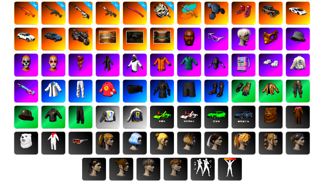 编号WXZ1248皮肤:8级南瓜M4 3级青龙762 1级赛博MK12 1级恶魔ACE 1级午夜惊魂98K 2级白虎锅 青龙762(异色) 聚合物 柏林鞋 逃亡SUV 兰博基尼跑车 兰博基尼SUV 兰博基尼奢华版 杜卡迪纯净黑 陈列室 兰博大厅 交易所接待室 黑鬼 滑雪镜 9s发型 金面 渔夫帽 亡灵律动妆容 万寿菊狂欢妆容 红面巾 黑大衣 白战神 黄东 活动绿东 发光手臂 电磁背包 白熊鞋 PEL夹克 女团MK 星魂猛虎下山运动夹克 星魂猛虎下山运动裤 阿狸 尼尔 拉风龙 NPL夹克 PJS夹克 车漆 杂技熊头套 杂技熊玩偶服 北极熊头套 北极熊连身衣 Number 小马尾 发型43 丸子头 发型21 萨迪娅的头纱 西游记 发型61 发型41 发型51 脏辫 发型24 类星之王 青海摇 人型看板 精致长裤 唯一甜甜圈背包(3级) 果酱甜甜圈 - 头盔(3级) 暴躁花生墨镜 釉彩甜甜圈面具 暴躁花生针织帽 甜甜圈遮阳帽 釉彩甜甜圈衬衫 釉彩甜甜圈手套 甜甜圈手套 釉彩甜甜圈运动鞋 暴躁花生运动鞋 甜甜圈运动鞋 甜甜圈短裤 暴躁花生连帽卫衣 暴躁花生长裤 甜甜圈上衣 釉彩甜甜圈运动裤 星魂猛虎下山滑雪镜 银色美人飞行员夹克 卡通学院夹克 零度机能风 冰川之锋夹克 无重力披风 斑斓危机 闪亮运动裤 工作裤 战术科技裤 粉鲨宝宝连身睡衣 蓝鲨宝宝连身睡衣 1号长袖运动衫 2号长袖运动衫 3号长袖运动衫 圣诞老人 猎手猫夹克 猎手猫上衣 猎手猫短裙 猎手猫皮鞋 银河系女孩 银河系女孩 绒毛伙伴 绒毛伙伴 绒毛伙伴 绒毛伙伴 棉花糖帽子 棉花糖马甲 棉花糖T恤 蓄势待发 蓄势待发 小青龙头套 小青龙玩偶服 小青龙脚套 柴犬帮 柴犬帮 维娜托水手 维娜托短裙 维娜托短靴 兄弟同盟 佣兵队制服 佣兵队长裤 欢快麋鹿 轰炸机夹克 磨损牛仔裤 缤纷混沌连帽卫衣 棉花蕾丝绒 棉花蕾丝连衣裙 紫喵喵卫衣 奶牛印花绑结式上衣(棕色) 老奶奶睡裙 老奶奶睡裤 鸡警 鸡警短裤 光滑丝质睡衣(蓝色) 光滑丝质睡裤(蓝色) 快乐冬眠蝴蝶结上衣 快乐冬眠蝴蝶结短裤 快乐冬眠花边上衣 快乐冬眠花边短裤 薄荷巧克力 头号主播 战术科技夹克 OGBG 纹身 晚餐幻象纹身 小恶魔纹身 蜘蛛纹身 金墨点染 金墨点染 群雄逐鹿 金墨点染 金墨点染 群雄逐鹿 群雄逐鹿 开拓者墨镜 开拓者手套 开拓者上衣 开拓者长裤 开拓者夹克 强袭者夹克 小兔航天局 小兔航天局 小兔航天局 小兔航天局 小兔航天局 小兔学院 绒毛小恶魔上衣 兔兔也朋克发箍 兔兔也朋克腿套 哥特上衣 哥特短裙 哥特长靴 守护兽的凝视 爱之小鸡 舞蹈派对! 7周年快乐! 万圣之夜 节日装饰 肾上腺素 天际之眼 手绘的“举起手来” 复古兜风 隐藏奖励 PUBG x NewJeans 猛虎 迪斯科舞会 催眠状态 双龙出海 月球漫步者 双狼成行 7周年快乐 - 头盔(1级) 兰博基尼 粉梦长眠 - 头盔(2级) 斑点狗 - 头盔(2级) 小狗耳朵 - 头盔(2级) 柠檬汁 - 头盔(2级) PUBG x NewJeans LOGO - 头盔(2级) 鸡斯卡 - 头盔(2级) 群星之力 - 头盔(2级) PCS5 磨砂炮铜 - 头盔(2级) 守望之龙 - 头盔(3级) 沙滩狂战士 - 头盔(3级) 圣诞型男 - 头盔(3级) 数位传送 - 头盔(3级) 赫尔墨斯之翼 - 头盔(3级) 小兔航空航天局 - 头盔(3级) 8th Anniversary - Helmet (Level 3) “熊宝贝” - 头盔(3级) PGC 2023 皇冠宝石 - 头盔(3级) 蓝鲨宝宝背包(2级) 汪汪伙伴背包(1级) PCS6 浓墨重彩背包(1级) 鸡斯卡鸡仔背包(2级) 汪汪伙伴背包(2级) 鸡斯卡背包(2级) 粉彩哥特背包(2级) PCS7 背包(2级) 紫色棱镜背包(3级) 如猫在背背包(3级) 7周年快乐背包(3级) 小兔快递背包(3级) 突围而出背包(1级) 汪汪伙伴背包(3级) PNC 2023 背包(3级) 小白鲨降落伞 踏浪而行降落伞 快乐小熊降落伞 为你疯狂降落伞 无重力降落伞 赛季31竞技降落伞 PCS5 降落伞 挣脱尘网降落伞 赛季30竞技降落伞 特殊快递降落伞 赛季27竞技降落伞 PGC 2021 降落伞 烈焰吐息降落伞 公路王牌降落伞 赛季26竞技降落伞 赛季32竞技降落伞 雪花 小兔快递制服套装 街头风套装 北极熊套装 EL POZO 主场队服套装 小兔航空航天局套装(粉) 冰雪女王套装 小兔学院吉祥物套装 无重力中型套装 PGC 2024 套装 1 晚秋-M416 柠檬汁 - M416 小兔航空航天局 - M416 [战场痕迹] 快乐星期天 - M416 PNC 2022 连战连捷 - M416 数码沙漠迷彩 - M416 糖霜乐园 - M416 PGC 2022 王牌登场 - Beryl M762 [战场痕迹] 黄金齿轮 - Beryl M762 魔女之力 - Beryl M762 鎏金王朝 - Beryl M762 PCS2 金色成就 - Beryl M762 毒性 - Beryl M762 [战场痕迹] 破碎元素 - AKM 绷带AK 金色落叶 - AKM 大理石宝藏 - AKM [战场痕迹] 孙悟空 - AKM 金色续响 - AUG [战场痕迹] 进军亚特兰蒂斯 - AUG 窒息的爱 - ACE32 [战场痕迹] 青龙之灵 - ACE32 霓虹之星 - SCAR-L G-DRAGON - SCAR-L 疯狂收割者 - SCAR-L 蔚蓝挑战者 - SCAR-L 鸡斯卡 - SCAR-L 粗糙 (橙色) - SCAR-L 锁链帮 - M16A4 [战场痕迹] 猩红时刻 - M16A4 分形几何 - QBZ 金色落叶 - Mk47 Mutant Blue Magic Blaster - G36C 钴蓝呼号 - G36C 标准猎手 - Groza 钴蓝呼号 - SLR 大理石宝藏 - SLR PGC 2022 王牌登场 - SLR 彩虹之上 - SLR 糖霜乐园 - SKS [战场痕迹] 十字军 - SKS 分形几何 - SKS 镀金 - SKS [战场痕迹] 破碎元素 - Mini14 PGC 2023 皇冠宝石 - Mk12 雪国风光 - Mk14 赛季31竞技铂金 - Mk14 孙悟空 - Mk14 花呢控 - VSS 标准猎手 - VSS 无信号 - QBU 璀璨星光 - QBU 亡灵之花 - 德拉贡诺夫 致命快递 - 德拉贡诺夫 睡衣派对保护者 - 德拉贡诺夫 镀金 - Win94 礼物环绕 - Kar98k 无慈悲 - Kar98k PNC 2023 完美角度 - Kar98k 泰戈 - Kar98k 不许胡闹 - Kar98k 数码沙漠迷彩 - Kar98k 魔女之