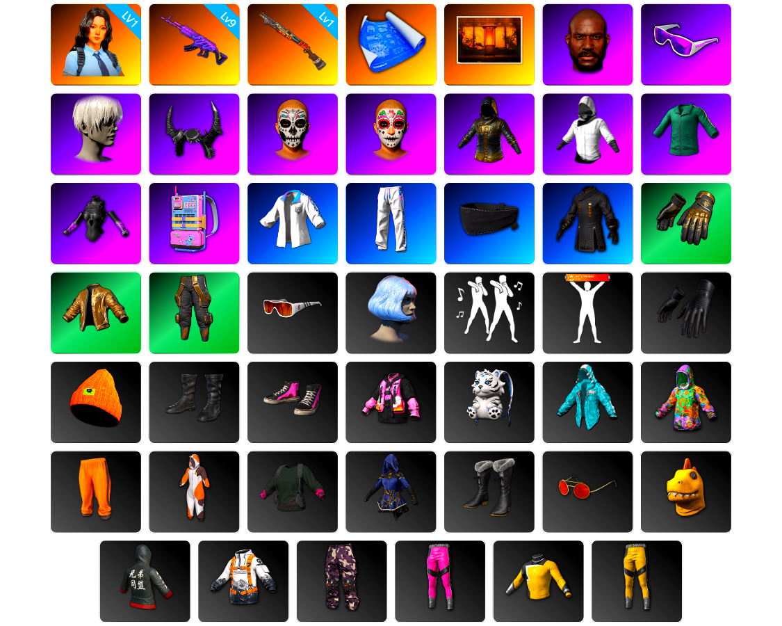 编号PZ1849皮肤:1级瀚娜 9级美杜莎762 1级烈日灼烧-S1897 张图纸 武器神龛 黑鬼 滑雪镜 9s发型 牛角 亡灵律动妆容 万寿菊狂欢妆容 GPT夹克 白战神 活动绿东 发光手臂 电磁背包 星魂猛虎下山运动夹克 星魂猛虎下山运动裤 尼尔 拉风龙 Number 发型43 青海摇 人型看板 黑血手套 暴躁花生针织帽 黑血短靴 暴躁花生运动鞋 暴躁花生连帽卫衣 星魂虎虎生威背包(3级) 冰川之锋夹克 加油!连帽卫衣 工作裤 三色猫连身衣 特工小兔长袖上衣 银河系女孩 银河系女孩 蓄势待发 恐龙乐园 兄弟同盟 维寒迪雪上运动夹克 维寒迪长裤 先驱战队 先驱战队 先驱战队 先驱战队 先驱战队 先驱战队 先驱战队 先驱战队 鸡警短裤 圣诞之子长裤 薄荷巧克力 头号主播 金墨点染 萨莉的T恤 萨莉3级头 小兔学院 兔兔也朋克发箍 发型59 万圣之夜 月下狼嚎 肾上腺素 把钱交出来 朱莉 流水线 女巫的黑暗仪式 兔兔吹泡泡 花开 亲爱的,看锅! 寰宇侠 - 头盔(1级) PCS6 浓墨重彩车手 - 头盔(1级) Carbon Fiber Commando - Helmet (Level 2) 北极游牧者 - 头盔(2级) 柠檬汁 - 头盔(2级) 战士阿冰 - 头盔(3级) 8th Anniversary - Helmet (Level 3) PNC 2025 战术科技背包(3级) PCS5 降落伞 彩色标记降落伞 晚秋-M416 魔女之力 - Beryl M762 绷带AK 金色续响 - AUG 霓虹之星 - SCAR-L 第一年纪念 - SCAR-L 疯狂收割者 - SCAR-L 鸡斯卡 - SCAR-L 璀璨星光 - QBU 镀金 - AWM 马桶人 - MP5K 钴蓝呼号 - UMP 翡翠之刃 - Vector [战场痕迹] 无信号 - S12K 都市猎手 - 十字弩 妙尔尼尔 - 平底锅 8th Anniversary - Pan 赛博小兔手套 人类猎手探险手套 准备就绪手套 维寒迪雪上运动手套 霓虹纹饰手套 蓝色闪电手套 PNC 2024 手套(红色) 暗夜追踪者手套 金底耐磨手套 卡通学院眼镜 百叶窗太阳镜(银色) 超级士兵墨镜 优雅夏日眼镜 雪片墨镜 优雅夏日太阳镜 沙滩宝贝智能眼镜 暗影突袭者墨镜 老式太阳镜 恶魔骑手妆容 小红帽的伤痕 哥特孩童妆容 龙之女皇眼影 夏日之星妆容 女性面容7 男性面容15 男性面容7 漫步沙滩妆容 时光探员妆容 Gameday Makeup 冬梦女孩妆容 绒毛伙伴妆容 发型32 发型38 发型45 发型88 发型87 发型85 发型83 发型70 Hairstyle 81 发型78 发型72 疯狂科学电波干扰背包 彩绘祭坛背包(2级) 小熊觉醒背包(2级) 守护天使背包(1级) 维寒迪雪上运动背包(1级) 噬命雏菊 - 头盔(2级) 维寒迪雪上运动 - 头盔(1级) 二哈头套 El Pozo 狂鸡队吉祥物头套 可怜的布娃娃面具 狐狸侯爵面具 传统韩服纱帽 PNC 2022 连战连捷鸭舌帽 夏日渔夫帽(蓝绿色) 准备就绪鸭舌帽 卡通袭击者针织帽 黑色绒线帽和耳机 诅咒渡鸦头套 人类猎手探险帽 远足者围巾 万寿菊狂欢发带 亡灵律动帽子 露鳍鲨鱼渔夫帽 PNC 2024 高尔夫球帽 彩虹漫游者遮阳帽配护目镜 冰雪天使王冠 圣诞条纹围巾(红色) “熊宝贝”睡眠眼罩 可爱小猫咪口罩 准备就绪口罩 类星之王的面具 PCS2 隐形生存者面巾 暗夜猎手面巾 历战骑士头盔 卡通袭击者眼罩 队长的迷彩面巾 猩红猎手面具 劫掠者面具 Carbon Fiber Commando Face Mask 准备就绪夹克 霓虹纹饰连帽卫衣 猛虎齿痕露脐上衣 花衬衫(蓝绿色) 夏日短裤(灰色) 改良韩服夹克 聚星女士的夹克 海洋小姐上衣 可爱喵喵旗袍 萨诺生存者T恤 鸡宝宝 T 恤 (白色) 先驱者衬衫 T 恤 (灰色) 恐龙乐园 LOGO T恤 雨中漫步夹克 亡灵律动衬衫 卧底助理上衣 小猫护体T恤 爱意环绕露脐上衣 火力四射夹克 亡灵律动夹克 暗影突袭者夹克 准备就绪长裤 西装裤子(黑色) 战斗裤 (棕色) 战斗裤 (卡其色) 磨损的牛仔裤(灰色) 数羊羊短款睡裤 卧底助理下装 暗影突袭者长裤 拖鞋(黑色) 轻便帆布运动鞋 (黑色) 先驱战队战靴 沙滩鞋(蓝绿色) 维寒迪雪上运动短靴 准备就绪运动鞋 高帮运动鞋 霓虹纹饰运动鞋 可爱喵喵短靴 太阳花瓣长靴 三色猫短靴 暗影突袭者短靴 “界限粉碎者” 恣马 “速度与金毛” 库佩RB “像素风大冒险” 罗尼 “恐龙乐园” 达西亚轿车 “赛车条纹” 肌肉跑车 “双龙会” 摩托车 “魔力甜心萨莉” 两栖装甲车 “缝缝补补” 小型摩托车 “金龙献瑞” 越野摩托车 "Cheers on Wheels" Mountain Bike “寒冬勇士” 双人越野车 “角鲨队队车” 迷你巴士 “雪橇骑手” 雪地摩托 “嬉皮士之魂” 摩托艇 “彩绘骷髅”摩托车 “亲吻太阳” 乌阿斯吉普车 PCS7 特战防弹衣(3级) 胜利之舞159 酷炫摇摆 想尝一口吗? 尴尬的提问 Dark Arts(第1部分) 胜利之舞152 冷静下来 胜利之舞151 瀚娜 - 下一个是谁? 胜利之舞46 胜利之舞111 PCS4之舞 - 勇创佳绩 胜利之舞102 胜利之舞69 胜利之舞66 胜利之舞110 胜利之舞56 胜利之舞94 胜利之舞78 胜利之舞38 胜利之舞122 PNC 2023之舞 - 熄灯 胜利之舞142 胜利之舞141 胜利之舞137 Victory Dance - 8th Anniversary 胜利之舞147 胜利之舞149 退后! 胜利渴望 爱心连射 我 心 你 节日氛围四溢 胜利之舞136 热身 十分满分的十分 来杯茶? 可爱的屈膝礼 胜利之舞80 手机拍照 拔枪! 胜利之舞23 胜利之舞19 #1 胜利之舞74 胜利之舞97 光芒四射庆祝仪式 来抓我啊! 嫉妒 诶嘿~ 棒棒哒 挑衅 投降 不耐烦 谢谢 停止! 抖缩 庆祝 同意 大厅姿势5 大厅姿势6 大厅姿势3 Roll the Dice 反对 你好 大厅姿势2 大厅姿势1 摄影达人 他们叫我终结者 你完蛋了 耸肩 过来 大厅姿势4 功夫大师 我在忙 驶向夕阳 雪景球 四面楚锅 节日之家 探照灯 维寒迪的小鸟 生存等级:3段