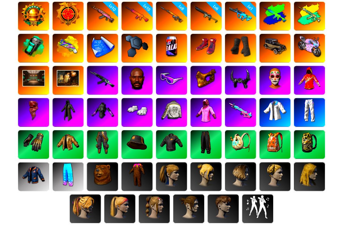 编号WJ132皮肤:猎手金 神枪手金 10级火麒麟 10级南瓜M4 8级齿轮炮 6级沙悟净MINI 1级GD-AUG 南瓜M4(异色) 妖魔之触(异色) 青色烟雾弹 黄色狂怒之雾-M79 张图纸 聚合物 劲爆蓝莓 柏林鞋 黑绷带 逃亡SUV 杜卡迪暮光粉 交易所接待室 荒凉仓库 辉煌AK 黑鬼 滑雪镜 金面 牛角 万寿菊狂欢妆容 17战队夹克 红面巾 黑大衣 发光手臂 白熊鞋 PML夹克 粉战神 女团MK 星魂猛虎下山运动夹克 星魂猛虎下山运动裤 拉风龙 劳动者夹克 Aixleft 杂技熊头套 杂技熊玩偶服 小马尾 丸子头 发型21 西游记 发型49 发型61 脏辫 类星之王 青海摇 人型看板 唯一甜甜圈背包(3级) 果酱甜甜圈 - 头盔(3级) 釉彩甜甜圈面具 甜甜圈遮阳帽 釉彩甜甜圈衬衫 釉彩甜甜圈手套 甜甜圈手套 釉彩甜甜圈运动鞋 甜甜圈运动鞋 甜甜圈短裤 甜甜圈上衣 釉彩甜甜圈运动裤 星魂虎虎生威背包(3级) 星魂虎虎生威背包(2级) 星魂虎虎生威背包(1级) 星魂虎虎生威平底锅 星魂的M416 星魂猛虎下山滑雪镜 星魂虎耀星辉面具 星魂虎耀星辉瑜伽上衣 星魂虎耀星辉工装裤 电波干扰背包 银色美人飞行员夹克 卡通学院夹克 零度机能风 加油!连帽卫衣 鳄鱼大军泳裤 战术科技裤 鸡斯卡 虎牙连身衣 猎手猫夹克 猎手猫上衣 猎手猫短裙 猎手猫皮鞋 银河系女孩 银河系女孩 棉花糖T恤 极光之友 极光之友 蓄势待发 蓄势待发 蓄势待发 蓄势待发 蓄势待发 打工小兔制服 恐龙乐园 柴犬帮 棉花蕾丝绒 亮片炫彩 奶牛印花毛皮大衣(黑色) 维寒迪雪上运动夹克 维寒迪长裤 老奶奶睡裙 先驱战队 先驱战队 先驱战队 先驱战队 先驱战队 先驱战队 鸡警 鸡警短裤 “粉”好夹克 “粉”好长裤 沉睡女王 沉睡女王 圣诞之子夹克 圣诞之子长裤 薄荷巧克力 薄荷巧克力 薄荷巧克力 薄荷巧克力 头号主播 战术科技夹克 晚餐幻象纹身 蜘蛛纹身 金墨点染 金墨点染 群雄逐鹿 群雄逐鹿 开拓者墨镜 开拓者手套 开拓者上衣 开拓者长裤 开拓者夹克 强袭者短裤 强袭者短鞋 强袭者上衣 强袭者夹克 开拓者短鞋 萨莉的长靴 小兔航天局 小兔学院 降落伞 绒毛小恶魔夹克 绒毛小恶魔短裙 悲喜 守护兽的凝视 爱之小鸡 不朽金箍 舞蹈派对! 7周年快乐! 万圣之夜 节日装饰 手绘的“举起手来” 回归 亲爱的... 把钱交出来 PUBG x NewJeans 猛虎 朱莉 流水线 女巫的黑暗仪式 均衡器 迪斯科舞会 花开 催眠状态 双龙出海 亲爱的,看锅! 大爆炸 无痕之钢 - 头盔(3级) 无痕之钢 - 头盔(2级) 无痕之钢 - 头盔(1级) 柴犬帮头盔(2级) 柴犬帮头盔(3级) 小兔快递 - 头盔(1级) 7周年快乐 - 头盔(1级) 狂人的摩托车 - 头盔(1级) Carbon Fiber Commando - Helmet (Level 2) 乘马远行 - 头盔(2级) 粉梦长眠 - 头盔(2级) 奶牛印花 - 头盔(2级) 斑点狗 - 头盔(2级) 小狗耳朵 - 头盔(2级) 百变小丑 - 头盔(2级) 得意门生 - 头盔(2级) 迪厅镜面球 - 头盔(2级) 锦鲤随行 - 头盔(2级) 林德仪式头盔(1级) 小兔铁桶 - 头盔(3级) 守望之龙 - 头盔(3级) 沙滩狂战士 - 头盔(3级) 芳心女猎手 - 头盔(3级) 太妃糖 - 头盔(3级) 数位传送 - 头盔(3级) STREET FIGHTER 6 - 头盔(3级) 游戏日 - 头盔(3级) 赫尔墨斯之翼 - 头盔(3级) 疯狂科学 - 头盔(3级) 小兔航空航天局 - 头盔(3级) 内马尔JR - 头盔(3级) 波普风 - 头盔(3级) 汪汪伙伴背包(1级) 柴犬帮背包(1级) 我的糖果曲奇背包(2级) 新生的奇趣背包(2级) 汪汪伙伴背包(2级) 粉彩哥特背包(2级) PCS7 背包(2级) PCS5 大巧不工背包(2级) 紫色棱镜背包(3级) 如猫在背背包(3级) 7周年快乐背包(3级) 小兔快递背包(3级) 恐龙乐园时尚背包(1级) 突围而出背包(1级) 汪汪伙伴背包(3级) 芳心女猎手背包(3级) 夏日远足背包(3级) 地穴看守者背包(3级) 甜甜圈之家降落伞 小兔学院降落伞 小白鲨降落伞 为你疯狂降落伞 无重力降落伞 赛季31竞技降落伞 赛季28竞技降落伞 挣脱尘网降落伞 34赛季伞 荣都华彩降落伞 赛季30竞技降落伞 PNC 2023 降落伞 赛季29竞技降落伞 赛季27竞技降落伞 烈焰吐息降落伞 赛季33竞技降落伞 雪花 赛季37竞技降落伞 私立学校校服套装 大灰狼套装 带刺芬芳套装 夜伴花开套装 传奇队篮球套装 夏日趣味套装 夏日复古套装 年末问候套装 圣诞老人自拍装套装 废土休闲套装 灭世朋克套装 夜店礼服套装 夏日开襟上衣套装 街头律动套装 小兔快递配送套装 传奇高手套装 彩色标记套装 劫掠者套装 高科技时尚小兔套装 远足者服饰套装 打工小兔套装 掠夺者队篮球套装 蛇蝎美人套装 迷雾追踪者套装 甜蜜梦境套装 狂热爱恋套装 烤鸡节服饰套装 1 PGC 2021 群雄逐鹿短款夹克礼包 聚星女士套装 沙漠骗徒套装 疯狂科学套装 专业守卫套装 粉色兔子套装 LOS LEONES 客场队服套装 麻辣小龙虾服饰套装 密使套装 皇室套装 肌肉套装 沙漠之花套装 狂欢小队套装 蟒蛇之帽套装 恐龙乐园员工套装 冰雪女王套装 朱莉的防尘外套套装 VTR 活跃者套装 狂人的连衣裤套装 圣柱军团战术套装 朱莉的潜行者套装 邓肯的褐湾套装 朱莉的褐湾套装 PGC 2019套装 朋克公主套装 朋克摇滚套装 侦探套装 棉花蕾丝套装 暖冬套装 嬉皮风服饰套装 唯一的爱服饰套装 晚秋-M416 暴脾气 - M416 [战场痕迹] 剧变熔岩 - M416 无慈悲 - M416 雪国风光 - M416 蟒蛇花园 - M416 彩糖蛋糕 - M416 数码沙漠迷彩 - M416 糖霜乐园 - M416 礼物环绕 - Beryl M762 花呢控 - Beryl M762 [战场痕迹] 湮灭 - Beryl M762 [战场痕迹] 青花之力 - Beryl M762 梅花同花 - Beryl M762 鎏金王朝 - B