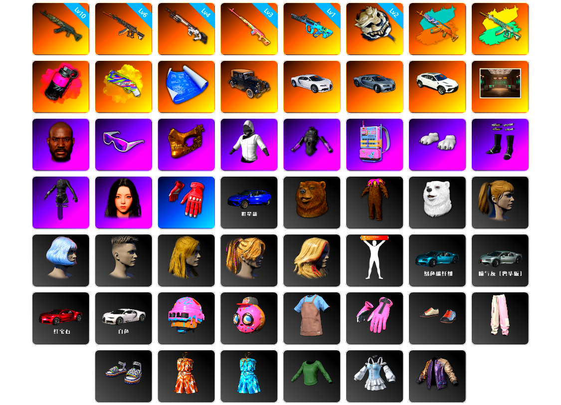 [DK531]10级青龙762 6级妖魔之触ACE 4级赛博MK12 3级德拉贡 1级GD-AUG 2级白虎锅 青龙762(异色) 妖魔之触(异色) 品红色烟雾弹 黄色狂怒之雾-M79 张图纸 布加迪跑车 布加迪奢华版跑车 兰博基尼SUV 交易所接待室 黑鬼 滑雪镜 金面 白战神 发光手臂 电磁背包 白熊鞋 aespa女团 阿狸 小马尾 西游记 车漆 小兔学院 绷带AK 胜利之舞39