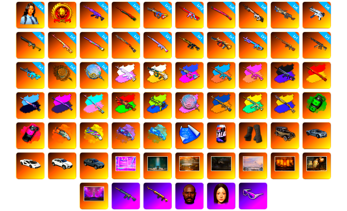 | 成长武器 | 赛博MK12 彩虹之上M24 玩偶大炮 孙悟空M24 猪八戒M4 唐三藏锅 沙悟净Mini 粉梦长眠德拉贡 爆裂弹球AUG 无信号M416 无重力 午夜惊魂98K 刻耳柏洛斯M249 美杜莎M762 弥诺陶洛斯AUG 塞壬平底锅 魔咒之力MK12 时光加农SKS 妖魔之触ACE 烈日灼烧 - S1897 GD-AUG |
