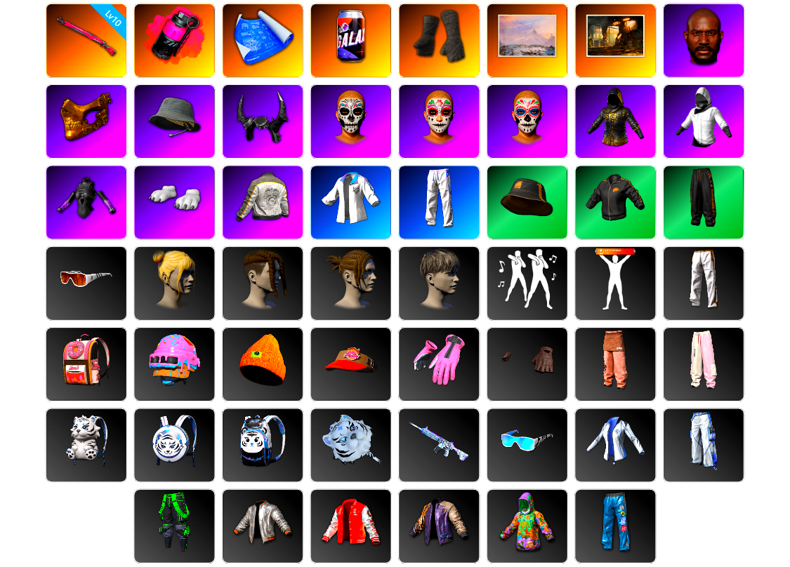 编号JR590皮肤:10级午夜惊魂98K 品红色烟雾弹 张图纸 劲爆蓝莓 黑绷带 冬季藏匿处 荒凉仓库 黑鬼 金面 渔夫帽 牛角 亡灵律动妆容 万寿菊狂欢妆容 午夜祭典妆容 GPT夹克 白战神 发光手臂 白熊鞋 PML夹克 星魂猛虎下山运动夹克 星魂猛虎下山运动裤 拉风龙 Number 丸子头 发型40 脏辫 发型24 青海摇 人型看板 精致长裤 唯一甜甜圈背包(3级) 果酱甜甜圈 - 头盔(3级) 暴躁花生针织帽 甜甜圈遮阳帽 釉彩甜甜圈手套 甜甜圈手套 暴躁花生长裤 釉彩甜甜圈运动裤 星魂虎虎生威背包(3级) 星魂虎虎生威背包(2级) 星魂虎虎生威背包(1级) 星魂虎虎生威平底锅 星魂的M416 星魂猛虎下山滑雪镜 星魂虎耀星辉瑜伽上衣 星魂虎耀星辉工装裤 朱芳芳长裤 银色美人飞行员夹克 卡通学院夹克 零度机能风 加油!连帽卫衣 闪亮运动裤 鳄鱼大军泳裤 粉鲨宝宝连身睡衣 蓝鲨宝宝连身睡衣 特工小兔长袖上衣 钟楼魔女 孤独情人 孤独情人 孤独情人 慌乱女仆 极光之友 极光之友 恐龙乐园 兄弟同盟 磨损牛仔裤 奶牛印花毛皮大衣(黑色) 维寒迪雪上运动夹克 先驱战队 先驱战队 先驱战队 先驱战队 先驱战队 先驱战队 先驱战队 先驱战队 先驱战队 先驱战队 鸡警 鸡警短裤 绸缎睡裤 圣诞之子长裤 快乐冬眠蝴蝶结上衣 快乐冬眠蝴蝶结短裤 快乐冬眠花边上衣 快乐冬眠花边短裤 头号主播 2025夹克 2025夹克 太阳之子电波干扰背包 OGBG 纹身 晚餐幻象纹身 开拓者手套 曼蒂的发箍 发型60 发型59 7周年快乐! 回归 催眠状态 双龙出海 猫咪挠 - 头盔(1级) 北极游牧者 - 头盔(2级) 奶牛印花 - 头盔(2级) 斑点狗 - 头盔(2级) 柠檬汁 - 头盔(2级) 守望之龙 - 头盔(3级) 芳心女猎手 - 头盔(3级) 数位传送 - 头盔(3级) 8th Anniversary - Helmet (Level 3) 蓝鲨宝宝背包(2级) 重返校园背包(2级) 包装狗狗背包(2级) 紫色棱镜背包(3级) 芳心女猎手背包(3级) 甜甜圈之家降落伞 36赛季 快乐冬眠套装 晚秋-M416 柠檬汁 - M416 雪国风光 - M416 糖霜乐园 - M416 竞速之道 - AKM 焰弹召唤者 - AKM 多彩科技猫 - AUG 镀银 - AUG 金色续响 - AUG PNC 2023 完美角度 - ACE32 霓虹之星 - SCAR-L G-DRAGON - SCAR-L 补丁 - SCAR-L 鸡斯卡 - SCAR-L 华夫饼 - M16A4 分形几何 - QBZ 分秒必争 - QBZ 心跳掠夺者 - Mk47 Mutant 淡雅之力 - Mk47 Mutant 无尽迷宫 - Mk47 Mutant 无尽迷宫 - Groza 钴蓝呼号 - K2 魔力宝贝 - SLR 糖霜乐园 - SKS 幸运骑士 - SKS 孤独情人 - Mk12 雪国风光 - Mk14 斑点狗 - VSS 魔力甜心萨莉的永恒挚友 - 德拉贡诺夫 亡灵之花 - 德拉贡诺夫 炽热沙漠 - VSS 余音环绕 - 十字弩 余音环绕 - UMP [战场痕迹] 镀金枪儿响叮当 - Kar98k 数码沙漠迷彩 - Kar98k 赛季36竞技黄金 - AWM 幸运骑士 - M24 马桶人 - MP5K 竞速之道 - P90 沙漠烈阳 - PP-19 Bizon 钴蓝呼号 - UMP 熔岩灯 - JS9 粗糙 (橙色) - UMP 心跳掠夺者 - MP9 魔女之力 - Vector 翡翠之刃 - Vector 淡雅之力 - Micro UZI 花呢控 - M249 回收再利用 - DP-28 灰色系 - DBS 无尽迷宫 - S12K 这不是玩具 - S1897 灰色系 - S686 恶战 - P92 火山灰烬 - 沙漠之鹰 华夫饼 - R1895 沙漠烈阳 - P1911 钴蓝呼号 - P18C 数码沙漠迷彩 - P18C 陶土质感大砍刀 陶土质感撬棍 战术斧头 马桶塞 恶战 - 十字弩 8th Anniversary - Pan 斯帕奇 - 平底锅 赛博小兔手套 秉烛罪人手套 邓肯的手套 蓝色闪电手套 金底耐磨手套 百叶窗太阳镜(银色) 黄昏墨镜 死亡六进制太阳镜 技工墨镜(白色) 暗影突袭者墨镜 老式太阳镜 恶魔骑手妆容 美人鱼妆容 雀斑妆容 暗夜兔女郎妆容 马戏团之星妆容 狂战士彩绘 夏日之星妆容 狂人·马尔霍特拉 女性面容16 女性面容7 男性面容15 邓肯·斯莱德 男性面容10 漫步沙滩妆容 时光探员妆容 Gameday Makeup 慌乱女仆妆容 绒毛伙伴妆容 发型12 发型44 发型66 马戏团之星发型 发型37 发型47 美人鱼发型 发型58 发型53 发型55 发型38 发型45 发型26 发型20 发型10 发型93 发型91 发型88 发型87 发型85 发型83 发型69 发型71 Hairstyle 81 Hairstyle 82 发型72 星际小兔背包(2级) 青铜神枪手背包(1级) 原生黑暗背包(1级) 马桶人 - 头盔(3级) 呆萌咕噜眼 - 头盔(2级) 二哈头套 恐龙乐园 “丽芙” 面具 没错我有罪头套 唯一的爱针织帽 驯鹿的红鼻子 PNC 2022 连战连捷鸭舌帽 夏日渔夫帽(蓝绿色) 准备就绪鸭舌帽 冰霜公主针织帽 侠盗猫针织帽 小兔快递制服鸭舌帽 小飞鸡脖枕 W.I.A 双马尾小熊针织帽 垂钓大师渔夫帽 露鳍鲨鱼渔夫帽 特工小兔发带 Winter Cheerleader Fur Hat 恶魔的微笑口罩 小兔兔口罩 可爱小猫咪口罩 准备就绪口罩 类星之王的面具 小可爱睡眠眼罩 极限追逐者面具 Carbon Fiber Commando Face Mask 坚持到底面巾 飞行员皮夹克(黑色) 花卉印花轰炸机夹克 蟒蛇吐信T恤 花衬衫(蓝绿色) 夏日短裤(灰色) 露白月明旗袍 PCS5 清场能手T恤 可爱喵喵旗袍 小兔快递制服上衣 专注马球衫 光明衬衫 鸡宝宝 插肩袖 T 恤 (蓝色/白色) 亚麻唐装 Polo衫(深灰色) 邓肯的马甲背心 条纹短袖睡衣 巨星毛衣 慵懒假日T恤 T 恤 (白色) T 恤 (灰色) 金色守护者上衣 柴犬慢跑T恤 Horse King的老虎T恤 暗夜追踪者马甲 小熊觉醒毛衣 小猫护体T恤 PUBG 贴花飞行员夹克 PNC 2025 夹克 暗影突袭者夹克 准备就绪长裤 午餐肉的潜行者长裤 邓肯的潜行者长裤 金属银朋克牛仔裤 灯笼裤 告白的运动长裤 海军军官长裤 战斗裤 (棕色) 战斗裤 (卡其色) 短裤配紧身裤(黑色) 太阳花瓣牛仔短裤 小兔快递制服短裙 海洋小姐短裙 狂野姿态褪色牛仔裤 坏蛋小蜜蜂长裤 金色