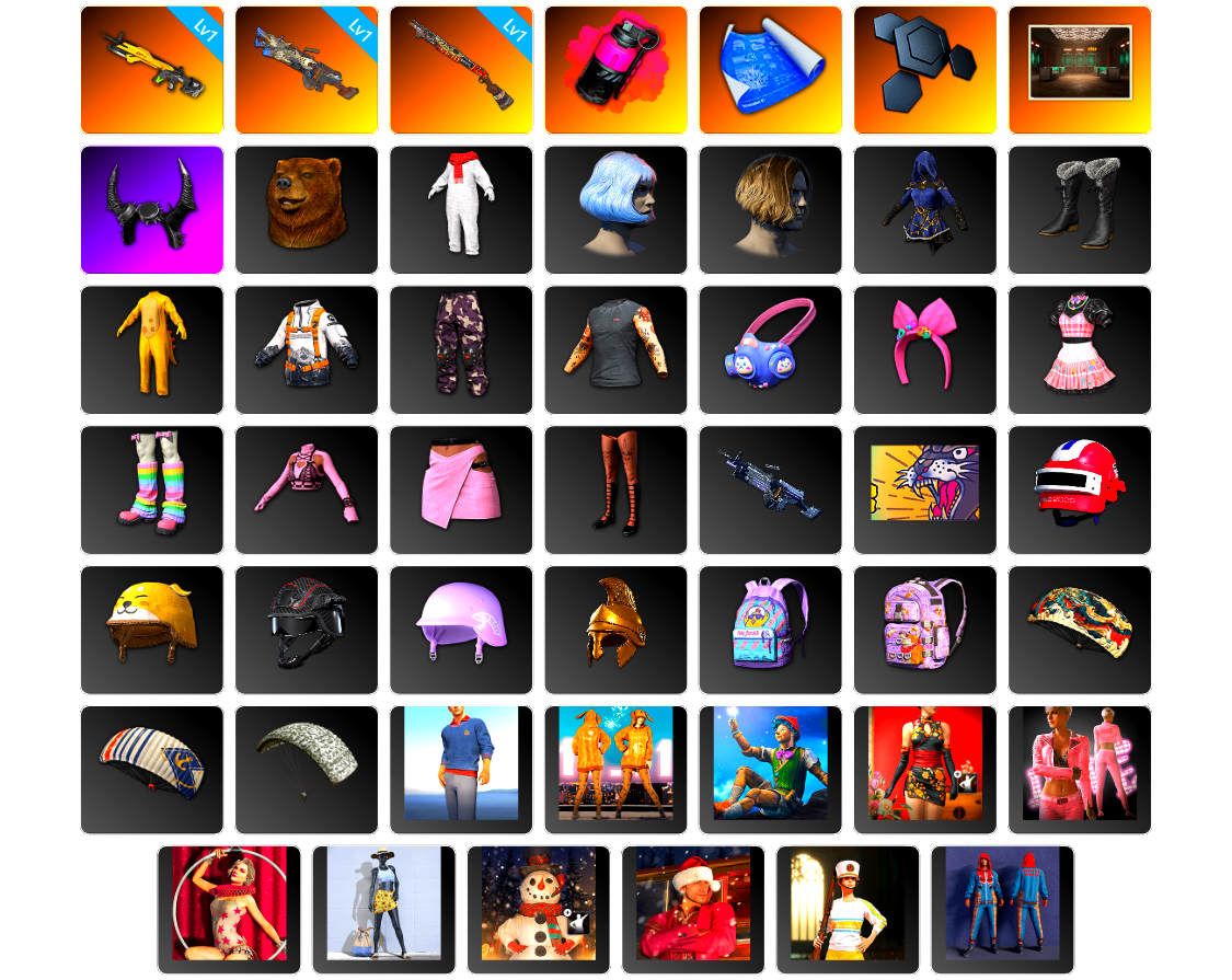 编号SP1224皮肤:免费版 1级小兔MK12 1级刻耳柏洛斯M249 1级烈日灼烧-S1897 品红色烟雾弹 张图纸 聚合物 交易所接待室 牛角 杂技熊头套 北极熊连身衣 发型43 发型21 银河系女孩 银河系女孩 恐龙乐园 维寒迪雪上运动夹克 维寒迪长裤 小恶魔纹身 兔兔也朋克面罩 兔兔也朋克发箍 兔兔也朋克洋裙 兔兔也朋克腿套 哥特上衣 哥特短裙 哥特长靴 [战场痕迹] M249 大猫狂怒 PNC 2025 015 - 头盔(3级) 柴犬帮头盔(2级) Carbon Fiber Commando - Helmet (Level 2) PUBG x NewJeans LOGO - 头盔(2级) 金色荣耀 鸡斯卡背包(2级) 柯基帮背包(3级) 烈焰吐息降落伞 一帆风顺降落伞 雪花 私立学校校服套装 绒汪汪服饰套装 拘束解除套装 夜伴花开旗袍套装 带刺芬芳套装 马戏团之星套装 夏日趣味套装 雪人套装 圣诞派对服饰套装 拉拉队套装 圣诞老人自拍装套装 白毛柴犬帮套装 二哈服饰套装 夜店礼服套装 传奇高手套装 特工小兔套装 经典特工套装 军用套装 骑士套装 狂徒服饰套装 春之步伐服饰套装 不毛之地套装 圣柱军团保安套装 疯狂患者套装 粉色兔子套装 曼提柯尔黄色越野摩托服套装 恩度若特技服套装 骷髅脸特技服套装 探月者套装 十字军服饰套装 冰雪女王套装 零度机能风套装 条纹睡衣套装 绸缎睡衣套装 正统朋克套装 朋克公主套装 棕熊猎人套装 棉花蕾丝套装 猩红猎手套装1 宇宙灵狐套装 [战场痕迹] 湮灭 - Beryl M762 [战场痕迹] 孙悟空 - AKM 镀银 - AUG 镀银 - SCAR-L 鎏金王朝 - QBZ 分形几何 - QBZ 灵魂枷锁 - Mk47 Mutant 淡雅之力 - Mk47 Mutant 这不是玩具 - Mk47 Mutant 镀金 - Groza 袜中好礼 - K2 [战场痕迹] 瓦尔哈拉 - SLR 金色落叶 - SKS 奥丁的先锋 - SKS [战场痕迹] 猩红漫彩 - 德拉贡诺夫 镀金 - Win94 [战场痕迹] 湮灭 - M24 Poof! - PP-19 Bizon 海藻来帮忙 - UMP 心跳掠夺者 - MP9 抽象派 - MP9 魔女之力 - Vector 地狱火 - Vector 数码陷阱 - Vector 圣诞之力 - DP-28 钴蓝呼号 - Micro UZI 幽灵之握 - DBS 海藻自己上 - O12 波涛荡漾 - S12K 这不是玩具 - S1897 抽象派 - S1897 华夫饼 - S686 都市猎手 - P92 华夫饼 - R1895 复古浪潮 - R45 陶土质感撬棍 马桶塞 妖魔大砍刀 都市猎手 - 十字弩 你的第一锅 - 平底锅 兔兔也朋克手套 准备就绪手套 维寒迪雪上运动手套 恶意侦测者手套 虚空女巫手套 熊猫手套 字节意志手套 恶魔骑手手套 恩度若特技手套 朱莉的墨镜 恶魔骑手妆容 哥特孩童妆容 匕首纹饰加红晕妆容 女性面容10 发型44 发型63 数位传送背包(3级) 柯基帮背包(2级) 柯基帮背包(1级) 维寒迪雪上运动背包(1级) 暗影之星的背包(1级) 柯基帮头盔(3级) 圣柱军团战术 - 头盔(2级) 维寒迪雪上运动 - 头盔(1级) 暗黑朋克 - 头盔(1级) 咆哮之力街头风面罩 没错我有罪头套 准备就绪鸭舌帽 春之步伐领巾 诅咒恶犬头套 熊猫发箍 恶意侦测者头盔 香寒发箍 W.I.A 双马尾小熊针织帽 太阳花瓣草帽 准备就绪口罩 口吐芬芳口罩 圣柱军团战术面罩 恶魔骑手面罩 虚空女巫面具 极限追逐者面具 劫掠者面具 Carbon Fiber Commando Face Mask 蟒蛇吐信夹克 准备就绪夹克 没错我有罪上衣 虚空女巫外套 月之影背心 维纳斯俱乐部服饰 恶魔骑手夹克 小小鸡仔外套 生存练习生连帽卫衣 学院派上衣 私立学校校服 不同凡响T恤 字节意志上衣 圣柱军团战术上衣(黑色) 太阳花瓣露脐装 虚空女巫胸衣 劫掠者洋裙 高尔夫马球衫 恶魔骑手上衣 小小鸡仔T恤 恶意侦测者夹克 T 恤 (白色) T 恤 (灰色) Horse King的老虎T恤 雨中漫步夹克 PGC 2024 T恤(黑色) 准备就绪长裤 宽条纹长裤 字节意志紧身裤 圣柱军团战术长裤(黑色) 迷雾追踪者短裤 战斗裤 (棕色) 战斗裤 (卡其色) 小小鸡仔短裤 虚空女巫短裙 恶魔骑手长裤 海军军官短裙 恶意侦测者长裤 Horse King的老虎短裤 杂技熊脚套 字节意志运动鞋 叛逆精神短靴 维寒迪雪上运动短靴 准备就绪运动鞋 高帮运动鞋 危险勿近运动鞋 恶魔骑手短靴 恶意侦测者运动鞋 太阳花瓣长靴 怪盗小兔长靴 铁血警官的长靴 虚空女巫丝袜 劫掠者长靴 极限追逐者运动鞋 恶贯满盈长裤 无重力重型防护靴 暗影突袭者短靴 “圣诞快乐”乌阿斯吉普车 “公路战士” 恣马 “界限粉碎者” 恣马 “出租车” 达西亚轿车 “魔力甜心萨莉” 两栖装甲车 “银河小队漫游者” 双人越野车 “8号赛手” 摩托艇 一帆风顺防弹衣(2级) Dark Arts(第1部分) 胜利之舞46 胜利之舞85 胜利之舞69 胜利之舞63 胜利之舞88 胜利之舞109 胜利之舞38 胜利之舞81 胜利之舞131 胜利之舞54 胜利之舞64 胜利之舞142 Victory Dance - 8th Anniversary 胜利渴望 矮油好可爱 胜利之舞27 让我听到你们的声音! 来杯茶? 胜利之舞80 #1 胜利之舞74 特殊问候 胜利的欢呼 嫉妒 棒棒哒 挑衅 投降 不耐烦 谢谢 停止! 抖缩 庆祝 同意 反对 你好 大厅姿势2 大厅姿势1 你完蛋了 耸肩 过来 初体验 生存等级:1段