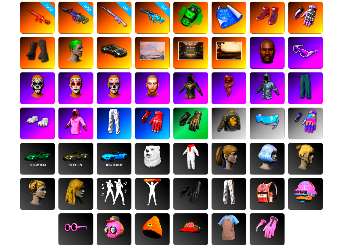 编号XDD56皮肤:10级朱雀M4 10级霓虹AUG 9级玩偶炮 1级GD-AUG 翡翠色烟雾弹 张图纸 柏林鞋 小黑盒 黑绷带 小丑男 马丁跑车 冬季藏匿处 交易所接待室 怀旧 黑鬼 滑雪镜 亡灵律动妆容 万寿菊狂欢妆容 午夜祭典妆容 丑男妆容 GPT夹克 红面巾 小战神 萨芬裤 白熊鞋 粉战神 星魂猛虎下山运动裤 阿狸 拉风龙 PKL夹克 Aixleft Aixleft 车漆 Vantage 车漆(坎伯兰灰) 北极熊头套 北极熊连身衣 小马尾 发型43 丸子头 西游记 青海摇 人型看板 黑血手套 精致长裤 唯一甜甜圈背包(3级) 果酱甜甜圈 - 头盔(3级) 暴躁花生墨镜 釉彩甜甜圈面具 暴躁花生针织帽 甜甜圈遮阳帽 釉彩甜甜圈衬衫 釉彩甜甜圈手套 甜甜圈手套 釉彩甜甜圈运动鞋 黑血短靴 暴躁花生运动鞋 甜甜圈运动鞋 甜甜圈短裤 G-DRAGON 的 PEACEMINUSONE 服饰 暴躁花生连帽卫衣 暴躁花生长裤 甜甜圈上衣 釉彩甜甜圈运动裤 G-DRAGON 的短靴 星魂虎虎生威背包(3级) 星魂虎虎生威背包(2级) 星魂虎虎生威背包(1级) 星魂虎虎生威平底锅 星魂的M416 星魂猛虎下山滑雪镜 星魂虎耀星辉面具 星魂虎耀星辉工装裤 朱芳芳手套 朱芳芳长裤 朱芳芳女仆裙 1级包 3级包 电波干扰背包 德拉贡诺夫 铁拳火箭筒 平底锅 PNC 2025 全力出击长裤 PNC 2025 全力出击夹克 战术女仆 PNC 2025 全力出击运动鞋 日光下澈凉鞋 丝滑夏日凉鞋 漫步沙滩凉鞋 日光下澈丛林短裤 日光下澈热带短裤 丝滑夏日短裤(白色) 丝滑夏日短裤(橄榄绿) 日光下澈丛林上衣 日光下澈热带上衣 丝滑夏日上衣(白色) 丝滑夏日上衣(橄榄绿) 漫步沙滩连衣裙(棕色) 漫步沙滩连衣裙(蓝色) 小丑夜总会服饰 闪亮运动裤 鳄鱼大军泳裤 三色猫连身衣 圣诞老人 特工小兔长袖上衣 特工小兔长裤 孤独情人 孤独情人 孤独情人 孤独情人 孤独情人 孤独情人 孤独情人 星际小兔 棉花糖帽子 棉花糖手套 棉花糖T恤 棉花糖短裤 棉花糖鞋 蓄势待发 蓄势待发 蓄势待发 蓄势待发 蓄势待发 恐龙乐园 维娜托口罩 维娜托水手 维娜托短裙 维娜托短靴 怨恨小姐 绒汪汪 紫喵喵手套 紫喵喵长裤 紫喵喵短靴 上校的渔夫帽 上校的夹克 老奶奶睡裙 老奶奶睡裤 先驱战队 先驱战队 先驱战队 先驱战队 先驱战队 先驱战队 先驱战队 先驱战队 鸡警短裤 光滑丝质睡裤(蓝色) 头号主播 大吉大利T恤(红色) 2025夹克 2025夹克 2025夹克 太阳之子电波干扰背包 OGBG 纹身 小恶魔纹身 绿色训练裤 金墨点染 群雄逐鹿 开拓者墨镜 开拓者手套 开拓者上衣 开拓者长裤 开拓者短鞋 萨莉的礼服 萨莉的皮鞋 萨莉2级头 小兔航天局 小兔学院 降落伞 兔兔也朋克面罩 绒毛小恶魔上衣 绒毛小恶魔短裙 绒毛小恶魔圆头鞋 兔兔也朋克发箍 兔兔也朋克洋裙 兔兔也朋克腿套 发型60 悲喜 平底锅 不朽金箍 7周年快乐! 月下狼嚎 节日装饰 天际之眼 大猫狂怒 手绘的“举起手来” 把钱交出来 隐藏奖励 迪斯科舞会 催眠状态 亲爱的,看锅! PNC 2025 全力出击 - 头盔(2级) 潜水教练 - 头盔(3级) 蜂刺甜心 糖果突击 - 头盔(1级) 7周年快乐 - 头盔(1级) 乘马远行 - 头盔(2级) 北极游牧者 - 头盔(2级) 斑点狗 - 头盔(2级) 柠檬汁 - 头盔(2级) 暗黑朋克 - 头盔(2级) 群星之力 - 头盔(2级) PCS5 磨砂炮铜 - 头盔(2级) 恐龙儿 - 头盔(2级) PGC 锦鲤随行 - 头盔(2级) 林德仪式头盔(1级) 沙滩狂战士 - 头盔(3级) 百变小丑 - 头盔(3级) STREET FIGHTER 6 - 头盔(3级) 迪厅镜面球 - 头盔(3级) 星际小兔 - 头盔(3级) 赫尔墨斯之翼 - 头盔(3级) 小兔航空航天局 - 头盔(3级) 8th Anniversary - Helmet (Level 3) 炼狱之角 “熊宝贝” - 头盔(3级) PGC 2023 皇冠宝石 - 头盔(3级) PNC 2025 全力出击背包(2级) 来自乐园的问候背包(3级) 汪汪伙伴背包(1级) 甜蜜梦境背包(1级) 我的糖果曲奇背包(2级) 包装狗狗背包(2级) 紫色棱镜背包(3级) 传奇高手旅行背包(3级) 沙滩风情背包(3级) 7周年快乐背包(3级) 夏日远足背包(3级) PGC 2023 皇冠宝石背包(3级) 欧姆的背包(3级) 炼狱之角背包(2级) G-DRAGON 降落伞 甜甜圈之家降落伞 上校的降落伞 踏浪而行降落伞 赛季28竞技降落伞 荣都华彩降落伞 赛季24竞技降落伞 赛季25竞技降落伞 瓦尔基里女王降落伞 赛季27竞技降落伞 赛季23竞技降落伞 PGC 2021 降落伞 赛季26竞技降落伞 雪花 妖魔横行降落伞 乐园的问候 PNC 2025 全力出击降落伞 36赛季 赛季37竞技降落伞 太阳之子降落伞 马桶人降落伞 小兔学院生化服套装 学院派套装 小红帽套装 模范生套装 暗夜猎手服饰套装 小兔快递制服套装 大灰狼套装 尽染樱色套装 寻腥猎犬套装 美人鱼服饰套装 绒汪汪服饰套装 狂鸡队吉祥物玩偶服套装 月影套装 狐狸侯爵套装 带刺芬芳套装 夜伴花开套装 运动风套装 街头风套装 牛年服饰套装 1 牛年服饰套装 2 传奇队篮球套装 马戏团之星套装 角鲨队吉祥物套装 夏日沙滩风情服饰套装 圣诞派对服饰套装 欢快麋鹿套装 巴哥生活好套装 拉拉队队服套装 波尔卡圆点夏日套装 斑点狗服饰套装 年末问候套装 圣诞老人自拍装套装 金毛柴犬帮套装 灭世朋克套装 海军军官制服套装 白毛柴犬帮套装 二哈服饰套装 夜店礼服套装 咆哮之力街头风套装 猎手猫套装 卡通学院套装 暗龙军团套装 优雅夏日连衫裤套装 传奇高手套装 彩色标记套装 没错我有罪套装 劫掠者套装 幸运怪盗套装 钞能力套装 生存者车手服饰套装 高科技时尚小兔套装 远足者服饰套装 马戏团领班套装 特工小兔套装 降落搜集求生套装 掠夺者