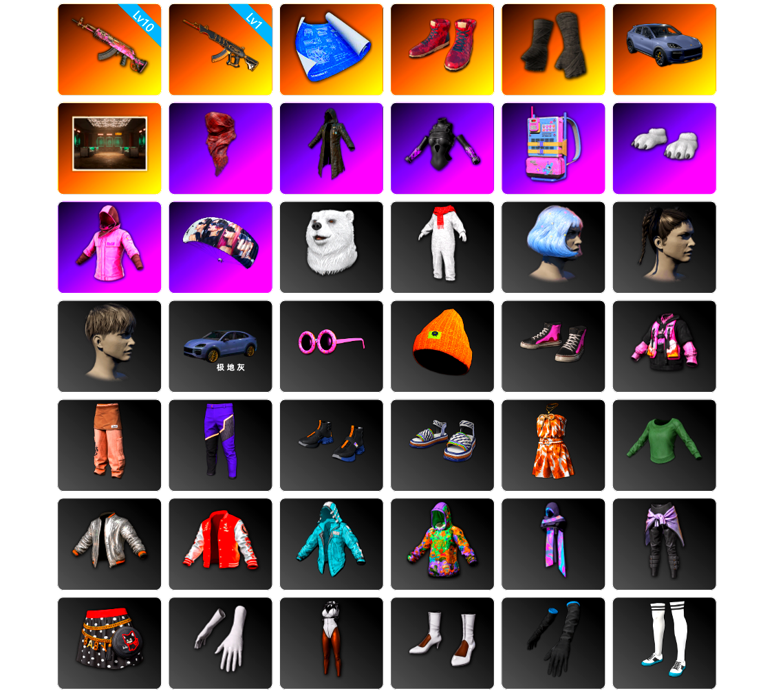 编号WXY1035皮肤:10级火麒麟 1级妖魔之触ACE 张图纸 柏林鞋 黑绷带 保时捷卡宴 交易所接待室 红面巾 黑大衣 发光手臂 电磁背包 白熊鞋 粉战神 aespa女团 北极熊头套 北极熊连身衣 发型43 发型51 发型24 Cayenne Turbo GT Paint (Arctic Grey) 暴躁花生墨镜 暴躁花生针织帽 暴躁花生运动鞋 暴躁花生连帽卫衣 暴躁花生长裤 PNC 2025 全力出击长裤 PNC 2025 全力出击运动鞋 漫步沙滩凉鞋 漫步沙滩连衣裙(棕色) 冬梦女孩 银色美人飞行员夹克 卡通学院夹克 冰川之锋夹克 加油!连帽卫衣 斑斓危机 战术科技裤 猎手猫短裙 特工小兔手套 特工小兔服饰 特工小兔高跟鞋 小队队长 小队队长 银河系女孩 银河系女孩 冬梦女孩 冬梦女孩 冬梦女孩 冬梦女孩 棉花糖短裤 蓄势待发 柴犬帮 柴犬帮 维寒迪雪上运动夹克 维寒迪长裤 老奶奶睡裙 老奶奶睡裤 圣诞之子长裤 快乐冬眠花边上衣 薄荷巧克力 头号主播 战术科技夹克 2025夹克 强袭者短裤 强袭者短鞋 强袭者夹克 萨莉的礼服 小兔学院 兔兔也朋克发箍 兔兔也朋克腿套 发型60 悲喜 万圣节大奖 隐藏奖励 朱莉 迪斯科舞会 花开 催眠状态 双龙出海 PNC 2025 全力出击 - 头盔(2级) 天翔队长 - 头盔(1级) Carbon Fiber Commando - Helmet (Level 2) Vikendi Varsity - Helmet (Level 2) 夹心软糖 - 头盔(2级) 锦鲤随行 - 头盔(2级) 战士阿冰 - 头盔(3级) 迪厅镜面球 - 头盔(3级) 小兔航空航天局 - 头盔(3级) 8th Anniversary - Helmet (Level 3) “熊宝贝” - 头盔(3级) PGC 2023 皇冠宝石 - 头盔(3级) PNC 2025 全力出击背包(2级) 汪汪伙伴背包(1级) 肆意挥洒背包(3级) 甜蜜梦境背包(3级) 突围而出背包(1级) Vikendi Varsity Parachute 冬雪欲来降落伞 挣脱尘网降落伞 荣都华彩降落伞 雪花 36赛季 杂技熊服饰套装 萌虎下山套装 蓝仙女套装 街头风套装 牛年服饰套装 4 巴哥生活好套装 斑点狗服饰套装 金毛柴犬帮套装 灭世朋克套装 海军军官制服套装 双龙齐鸣套装 龙之女皇套装 小兔快递配送套装 远足者服饰套装 特工小兔套装 精致特工套装 诅咒狼人套装 废土套装 烤鸡节服饰套装 1 春之月夜服饰套装 春之步伐服饰套装 类星之王套装 快枪手套装 骷髅脸特技服套装 小兔航空航天局套装(粉) 探月者套装 历战骑士服饰套装 皇室套装 恐龙乐园员工套装 驯鹿嬉戏套装 午餐肉的帕拉莫连帽卫衣套装 褐湾街头套装 小可爱睡衣套装 圣诞型男套装 踏浪而行套装 青花怒放套装 迷人鲜花套装 彩虹漫游者套装 孤独情人套装 极限追逐者套装 [战场痕迹] 金色落叶 - M416 数码沙漠迷彩 - M416 竞速之道 - AKM 标准猎手 - AKM 粗糙 (橙色) - AKM 金色续响 - AUG G-DRAGON - SCAR-L [战场痕迹] PNC 2025 全力出击 - SCAR-L 淡雅之力 - Mk47 Mutant 心跳掠夺者 - Mk47 Mutant 这不是玩具 - Mk47 Mutant 钴蓝呼号 - G36C 分形几何 - G36C 龙纹 - Groza 无拘来世 - K2 PGC 2022 王牌登场 - SLR [战场痕迹] 十字军 - SKS 礼品店 - SKS [战场痕迹] 破碎元素 - Mini14 雪国风光 - Mk14 标准猎手 - VSS 璀璨星光 - QBU 魔力甜心萨莉的永恒挚友 - 德拉贡诺夫 致命快递 - 德拉贡诺夫 炽热沙漠 - Mk47 Mutant 余音环绕 - 十字弩 余音环绕 - UMP 镀金 - Win94 赛季36竞技黄金 - AWM [战场痕迹] 湮灭 - M24 爬行者之印 - 莫辛纳甘步枪 Starstruck - MP5K 灰色系 - MP5K 竞速之道 - P90 沙漠烈阳 - PP-19 Bizon 竞速之道 - UMP 熔岩灯 - JS9 拼图 - 汤姆逊冲锋枪 雪国风光 - 汤姆逊冲锋枪 抽象派 - MP9 抽象派 - Vector 淡雅之力 - Micro UZI 钴蓝呼号 - Micro UZI 数码沙漠迷彩 - Micro UZI 圣诞猎手 - M249 灰色系 - DBS 双色 - DBS 海藻自己上 - O12 波涛荡漾 - S12K 毒性 - S1897 礼品店 - S686 恶战 - P92 三重彩 - P92 数码沙漠迷彩 - P92 沙漠烈阳 - 沙漠之鹰 水手 - R1895 沙漠烈阳 - P1911 水手 - P18C 陶土质感大砍刀 PUBG信条钢管 陶土质感撬棍 海洋哑光(蓝色) - 镰刀 淡雅之力 - 镰刀 守墓者手杖 暗黑断罪之剑 你的第一锅 - 平底锅 鸡斯卡 - 平底锅 碎瓜者 - 平底锅 8th Anniversary - Pan 午餐肉的护手绷带 神秘危险品手套 兔兔也朋克手套 胜利收割者手套 类星之王的手套 人类猎手手套 队长的迷彩手套 准备就绪手套 零度机能风摩托车手手套 铁血警官的手套 维寒迪雪上运动手套 恶意侦测者手套 熊猫手套 字节意志手套 PGC 2022 战术科技手套 PGC 2022 斑斓危机手套 恩度若特技手套 狂野姿态手镯套组 PNC 2025 全力出击手套 漫步沙滩手环 暗夜追踪者手套 芳心女猎手手套 卡通学院眼镜 百叶窗太阳镜(银色) 海湾太阳镜 飞行员太阳镜(琥珀色) 荣都学者眼镜 沙漠骗徒护目镜 PGC 2022 斑斓危机墨镜 暗影突袭者墨镜 老式太阳镜 快乐冬眠墨镜 无重力重型护目镜 哥特孩童妆容 红色眼影妆容 拉万 漫步沙滩妆容 Gameday Makeup 冬梦女孩妆容 发型39 发型31 发型55 发型50 发型20 发型91 发型89 Hairstyle 81 发型78 迷彩旅行背包(3级) 海湾救生员背包(3级) 寒锋背包(3级) 战士阿冰背包(3级) 恐龙地带背包(3级) 花卉印花背包 (2级) 锦鲤随行背包(2级) 米拉玛地图背包(2级) PCS2 弹药库背包(2级) 火山灰烬背包(2级) 恐龙皮背包(2级) NAVI PGC 2022 冠军特辑 - 防弹衣(2级) Vikendi Varsity Backpack (Level 2) 春之祥龙背包(1级) 勇往直前背包(1级) 维寒迪雪上运动背包(1级) 破碎硬壳背包(1级) 部落王朝背包(1级) 小兔快递 - 头盔(3级) PUBG信条 - 头盔(2级) 维寒迪雪上运动 - 头盔(1级) 好梦星空 - 头盔(1级) 礼品装 - 头盔(1级) 扫雷 - 头盔(1级) El Pozo 狂鸡队吉祥物头套 恐龙乐园 “本尼” 面具 恐龙