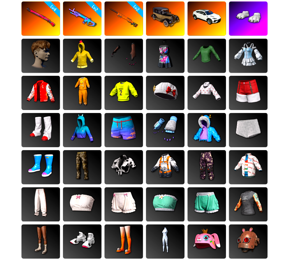 编号PZ2065皮肤:4级午夜惊魂98K 2级魔咒之力Mk12 2级夜曲M24 逃亡SUV 兰博基尼SUV 白熊鞋 类星之王 非鸡连帽卫衣 叛逆兔手套 黑暗兔兔连衫裤 冬梦女孩 冰雪天使连衣裙 卡通学院夹克 小可爱睡衣 2号长袖运动衫 冬梦女孩 冬梦女孩 冬梦女孩 冬梦女孩 极光之友 极光之友 宝贝外面冷 宝贝外面冷 宝贝外面冷 宝贝外面冷 佣兵队长裤 奶牛印花绑结式上衣(黑色) 维寒迪雪上运动夹克 维寒迪长裤 圣诞之子夹克 圣诞之子长裤 快乐冬眠蝴蝶结上衣 快乐冬眠蝴蝶结短裤 快乐冬眠花边上衣 快乐冬眠花边短裤 蜘蛛纹身 群雄逐鹿 开拓者短鞋 萨莉的长靴 小兔航天局 小兔学院 7周年快乐! 大猫狂怒 双狼成行 蓝鲨宝宝 - 头盔(2级) 7周年快乐 - 头盔(1级) 战士阿冰 - 头盔(3级) 守望之龙 - 头盔(3级) 蓝鲨宝宝背包(2级) 7周年快乐背包(3级) BLACKPINK 背包(3级) 冬雪欲来降落伞 私校制服套装 碰撞测试服饰套装 拉万的套装 晚秋-M416 雪国风光 - M416 蟒蛇花园 - M416 [战场痕迹] 金色落叶 - M416 [战场痕迹] 湮灭 - Beryl M762 魔女之力 - Beryl M762 银河小队 - Beryl M762 毒性 - Beryl M762 山花烂漫 - Beryl M762 鎏金王朝 - Beryl M762 [战场痕迹] 朱雀之灵 - AKM 蟒蛇花园 - AKM [战场痕迹] 孙悟空 - AKM 镀银 - AUG 金色续响 - AUG 宝贝外面冷 - ACE32 糖果碗 - ACE32 假日精神 - SCAR-L 疯狂收割者 - SCAR-L 皇家舰队 - M16A4 数码丛林迷彩 - M16A4 分秒必争 - QBZ 方形铬印 - Mk47 Mutant 无尽迷宫 - Mk47 Mutant Blue Magic Blaster - G36C 丛林潜行者 - G36C 方形铬印 - Groza 雪花 - K2 钴蓝呼号 - SLR 大理石宝藏 - SLR [战场痕迹] 猛虎猎手 - SLR 彩虹之上 - SLR 曼提柯尔 - SLR 金色神焰 - SLR 假日精神 - SKS 奥丁的先锋 - SKS [战场痕迹] 漫彩四溢 - SKS 镀金 - SKS 幸运骑士 - SKS 彩虹之上 - Mini14 [战场痕迹] 周六搅局者 - Mk12 银河小队 - Mk12 雪国风光 - Mk14 赛季31竞技黄金 - Mk14 孙悟空 - Mk14 优雅镀金 - Mk14 海洋哑光(蓝色) - VSS 斑点狗 - VSS 鎏金王朝 - QBU 蟒蛇花园 - QBU 睡衣派对保护者 - 德拉贡诺夫 余音环绕 - UMP 镀金 - Win94 数码沙漠迷彩 - Kar98k 猪八戒 - AWM 数码丛林迷彩 - AWM 镀金 - AWM [战场痕迹] 湮灭 - M24 悸动玫瑰 - M24 幸运骑士 - M24 恶战 - 莫辛纳甘步枪 海兽 - 莫辛纳甘步枪 爬行者之印 - 莫辛纳甘步枪 马桶人 - MP5K 睡衣派对保护者 - JS9 疯狂收割者 - MP5K 灰色系 - MP5K 赛季33竞技黄金 - FAMAS 唐三藏 - FAMAS 竞速之道 - P90 赛季32竞技黄金 - P90 沙悟净 - P90 沙漠烈阳 - PP-19 Bizon 方形铬印 - PP-19 Bizon 镀金 - UMP 镀银 - UMP 淡雅之力 - 汤姆逊冲锋枪 镀银 - 汤姆逊冲锋枪 魔女之力 - Vector 海洋哑光(绿色) - Vector 圣诞之力 - DP-28 镀金 - Vector 锁链帮 - Micro UZI 淡雅之力 - Micro UZI 数码沙漠迷彩 - Micro UZI 花呢控 - M249 三重条纹 - DP-28 陶土质感 - DP-28 雪花 - DP-28 镀银 - DP-28 幽灵之握 - DBS 海藻自己上 - O12 都市猎手 - 锯短型霰弹枪 丛林潜行者 - 锯短型霰弹枪 游猎之旅 - S12K 无尽迷宫 - S12K 镀银 - S12K 毒性 - S1897 镀银 - S1897 华夫饼 - S686 都市猎手 - P92 双色 - P92 丛林潜行者 - P92 恶战 - P92 数码沙漠迷彩 - P92 三重彩 - P92 沙漠烈阳 - 沙漠之鹰 三重条纹 - 沙漠之鹰 华夫饼 - R1895 数码沙漠迷彩 - P18C 圣诞之力 - P18C 陶土质感大砍刀 军铲 陶土质感撬棍 三重条纹 - 撬棍 双色镰刀 马桶塞 回收再利用 - 十字弩 恶战 - 十字弩 7周年快乐 - 平底锅 历久弥新 - 平底锅 午餐肉的护手绷带 暗黑心手套 7周年快乐手套 类星之王的手套 队长的迷彩手套 战场老兵手套 准备就绪手套 维寒迪雪上运动手套 寻腥猎犬手套 疯狂护士手套 卡通学院眼镜 精致的眼镜 PGC 2022 斑斓危机墨镜 暗影突袭者墨镜 快乐冬眠墨镜 男性面容7 男性面容16 男性面容8 冬梦女孩妆容 绒毛伙伴妆容 发型78 发型72 战士阿冰背包(3级) 海洋迷彩背包(2级) 雪片背包(2级) 肆意挥洒背包(2级) 躲兔兔背包(2级) 维寒迪雪上运动背包(1级) 类星之王 - 头盔(3级) 专业守卫 - 头盔(2级) 死亡六进制 - 头盔(2级) 维寒迪雪上运动 - 头盔(1级) 一帆风顺 - 头盔(1级) El Pozo 狂鸡队吉祥物头套 怪盗小兔面具 月之狂蜥的头套 没错我有罪头套 可怜的布娃娃面具 驯鹿的红鼻子 7周年快乐甜筒帽 春之漫游软帽 大檐遮阳帽 费多拉帽 队长的迷彩鸭舌帽 马戏团领班礼帽 诅咒渡鸦头套 西部警官面巾 寄情尼罗河渔夫帽 冰雪天使王冠 圣诞之子针织帽 准备就绪口罩 卡通学院面具 队长的迷彩面巾 猩红猎手面具 猎人的面具 幸运怪盗面具 小可爱睡眠眼罩 检察官防毒面具 寻腥猎犬嘴套 沙暴伪装丝巾 维寒迪飞行夹克 准备就绪夹克 猩红猎手夹克 类星之王的背心 战场老兵夹克 西装上衣(白色) 午餐肉的潜行者夹克 可怜的布娃娃马甲 类星之王的夹克 骑师夹克 公路战士夹克 寻腥猎犬夹克 橙汁上衣 小小鸡仔外套 下次好运衬衫 “熊宝贝”T恤 战场老兵紧身马甲 寄情尼罗河衬衫 小恐龙露脐装 太阳花瓣露脐装 沙滩宝贝操作员上衣 7周年快乐夹克 慵懒假日T恤 小小鸡仔T恤 卡拉金本土上衣 T 恤 (白色) 先驱者衬衫 棕熊猎人外套 T 恤 (灰色) 龙年大吉上衣 Horse King的老虎T恤 雨中漫步夹克 快乐冬眠连帽卫衣(米色) 快乐冬眠连帽卫衣(流沙色) 卡通学院连身衣 暗影突袭者夹克 卡通袭击者牛仔裤 战场老兵长裤 飞行员裤(米色) 私立学校校裤 慵懒假日长裤 战斗裤 (棕色) 战斗裤 (卡其色) 寻腥猎犬长裤 寄情尼罗河短裤 小小鸡仔短裤 7周年快乐短裙 暗影突袭者长裤 Hors