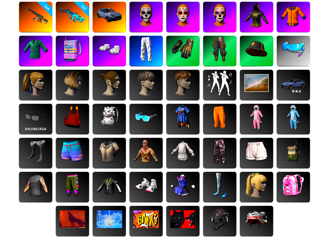 编号PZ2536皮肤:4级妖魔之触ACE 2级GD-AUG 保时捷卡宴 亡灵律动妆容 万寿菊狂欢妆容 午夜祭典妆容 GPT夹克 黄东 活动绿东 电磁背包 白熊鞋 星魂猛虎下山运动裤 拉风龙 Aixleft 小马尾 发型21 脏辫 发型24 类星之王 青海摇 零度计划 Cayenne Turbo GT Paint (Arctic Grey) 巴黎世家透明方形墨镜 火鸡帽子 星魂虎虎生威背包(3级) 星魂猛虎下山滑雪镜 无重力披风 工作裤 粉鲨宝宝连身睡衣 蓝鲨宝宝连身睡衣 银河系女孩 极光之友 维娜托水手 佣兵队制服 棉花蕾丝连衣裙 维寒迪长裤 快乐冬眠蝴蝶结短裤 太阳之子电波干扰背包 晚餐幻象纹身 强袭者短裤 强袭者上衣 开拓者短鞋 萨莉的礼服 萨莉的皮鞋 发型60 曼迪3级包 月下狼嚎 节日装饰 大爆炸 双狼成行 Carbon Fiber Commando - Helmet (Level 2) 斑点狗 - 头盔(2级) 柠檬汁 - 头盔(2级) 得意门生 - 头盔(2级) PCS5 磨砂炮铜 - 头盔(2级) 甜蜜梦境背包(1级) 沙滩风情背包(3级) PGC 2022 降落伞 孤独情人降落伞 太阳之子降落伞 泰索尼克降落伞 [战场痕迹] 剧变熔岩 - M416 雪国风光 - M416 PNC 2022 连战连捷 - M416 PGC 2023 皇冠宝石 - Beryl M762 银河小队 - Beryl M762 [战场痕迹] 青花之力 - Beryl M762 Winter Reign - AKM 亡灵之花 - SCAR-L 鸡斯卡 - SCAR-L 分秒必争 - QBZ 灵魂枷锁 - Mk47 Mutant 钴蓝呼号 - G36C 分形几何 - G36C 镀金 - Groza 淬火真金 - K2 大理石宝藏 - SLR [战场痕迹] 十字军 - SKS 银河小队 - Mk12 璀璨星光 - QBU 致命快递 - 德拉贡诺夫 炽热沙漠 - VSS 余音环绕 - 十字弩 珍珠王朝 - AWM 疯狂收割者 - M24 无拘来世 - 莫辛纳甘步枪 马桶人 - MP5K 竞速之道 - P90 沙漠烈阳 - PP-19 Bizon 破冰者 - UMP 钴蓝呼号 - UMP 熔岩灯 - JS9 熔岩灯 - UMP 拼图 - 汤姆逊冲锋枪 灵魂枷锁 - Vector 精致赫尔墨斯 - Micro UZI 加纳多印花 - M249 无拘来世 - DP-28 灰色系 - DBS 无尽迷宫 - S12K 华夫饼 - S686 波涛荡漾 - S686 都市猎手 - P92 恶战 - P92 华夫饼 - R1895 钴蓝呼号 - P18C 水手 - P18C PUBG信条钢管 朋克战斧 淡雅之力 - 镰刀 马桶塞 妖魔大砍刀 不朽游行 - 铁拳火箭筒 类星之王的手套 队长的迷彩手套 月之狂蜥的手套 雪色美人手套 窒息的爱袖套 疯狂护士手套 便捷式棒球部手套 午夜祭典手套 万寿菊狂欢手套 亡灵律动手套 蓝色闪电手套 都市耀光戒指 狂野姿态手镯套组 金底耐磨手套 侦探眼镜 寻路者盲人眼镜 技工墨镜(白色) 沙漠骗徒护目镜 朱莉的墨镜 都市耀光墨镜 美人鱼妆容 雀斑妆容 女性面容22 末世面容 女性面容21 男性面容11 男性面容8 发型16 发型54 发型12 发型39 发型66 发型37 发型18 美人鱼发型 发型58 发型53 末世发型 发型31 发型42 发型63 发型91 第8区旅行背包(3级) 寒锋背包(3级) 艾伦格零度计划背包(3级) 坚持到底背包(3级) 花卉印花背包 (2级) 米拉玛地图背包(2级) 末日烙印背包(2级) 彩绘祭坛背包(2级) 勇往直前背包(1级) 守护天使背包(1级) 维寒迪雪上运动背包(1级) 太阳之子 - 头盔(2级) 马桶人 - 头盔(3级) 狂欢小队 - 头盔(3级) 呆萌咕噜眼 - 头盔(2级) 噬命雏菊 - 头盔(2级) 专业守卫 - 头盔(2级) PUBG信条 - 头盔(2级) 维寒迪雪上运动 - 头盔(1级) 二哈头套 El Pozo 狂鸡队吉祥物头套 月之狂蜥的头套 烤鸡节外星人护目镜 没错我有罪头套 驯鹿的红鼻子 PNC 2022 连战连捷鸭舌帽 传奇高手鸭舌帽 雪色美人帽 诅咒狼人头套 便捷式棒球部帽子 万寿菊狂欢发带 亡灵律动帽子 暗夜兔女郎面具 PGC 2023 帝皇的荆棘面具 队长的迷彩面巾 绸缎睡眠眼罩 小可爱睡眠眼罩 PGC 2022 战术科技面罩 烤鸡节围巾 坚持到底面巾 狂野姿态上衣 月光游牧者上衣 飞行员皮夹克(黑色) 烤鸡节夹克 类星之王的夹克 龙之女皇束腰 龙之女皇服饰 冰雪女王夹克 小小鸡仔外套 PNC 2022 连战连捷夹克 迷雾追踪者上衣 吉萨的假日连帽卫衣 吉萨的假日T恤 窒息的爱罩衣 模范生上衣 守护天使夹克 侦探上衣 小小鸡仔T恤 传奇高手球衣 快乐冬眠连帽卫衣(米色) 快乐冬眠连帽卫衣(流沙色) PGC 2023 女皇的马甲 监控人外套 亡灵律动衬衫 PGC 2025 Windbreaker 雪地迷彩夹克 火力四射夹克 都市耀光夹克 月之狂蜥的长裤 PCS4 黄金挑战者长裤 朱莉的长裤 PNC 2022 连战连捷长裤 类星之王的长裤 游击战术裤 野猫长裤 吉萨的假日长裤 窒息的爱长裤 生意兴隆长裤 清风徐来喇叭裤 慵懒假日长裤 侦探长裤 小兔快递仓管短裤 小小鸡仔短裤 传奇高手牛仔裤 拉拉队裙子 极限追逐者短裤 雪地工装裤 午夜祭典短裤 监控人长裤 亡灵律动长裤 都市耀光宽松长裤 月光游牧者短裙 狂野姿态褪色牛仔裤 万寿菊狂欢长靴 青花怒放比基尼短裤 佣兵队运动鞋 传奇高手运动鞋 PCS4 金底运动鞋 类星之王的短靴 PNC 2022 连战连捷短靴 维寒迪雪上运动短靴 准备就绪运动鞋 美人鱼拖鞋 玩具匠人圆头鞋 海洋独行侠短靴 拉拉队运动鞋 朋克预备生短靴 甜蜜梦境长靴 雪色美人短靴 龙之女皇丝袜配高跟鞋 野猫运动鞋 PGC 2022 战术科技短靴 极限追逐者运动鞋 雪地迷彩短靴 便捷式棒球部鞋子 午夜祭典短靴 监控人皮鞋 亡灵律动皮鞋 月光游牧者短靴 狂野姿态拖鞋 蓝鲨宝宝睡拖 粉鲨宝宝睡拖 青花怒放凉鞋 “公路战士” 恣马 “速度与金毛” 库佩RB “出租车” 达西亚轿车 “弹球机” 双人越野车 “PCS2 战术扭矩” 双人越野车 “乡村巴士” 迷你巴士 “雪橇骑手” 雪地摩托 “飞得更高” 动力滑翔机 “彩绘骷髅”摩托车 “泰索尼克”达西亚轿车 “绝尘时刻” 库佩RB 海岸