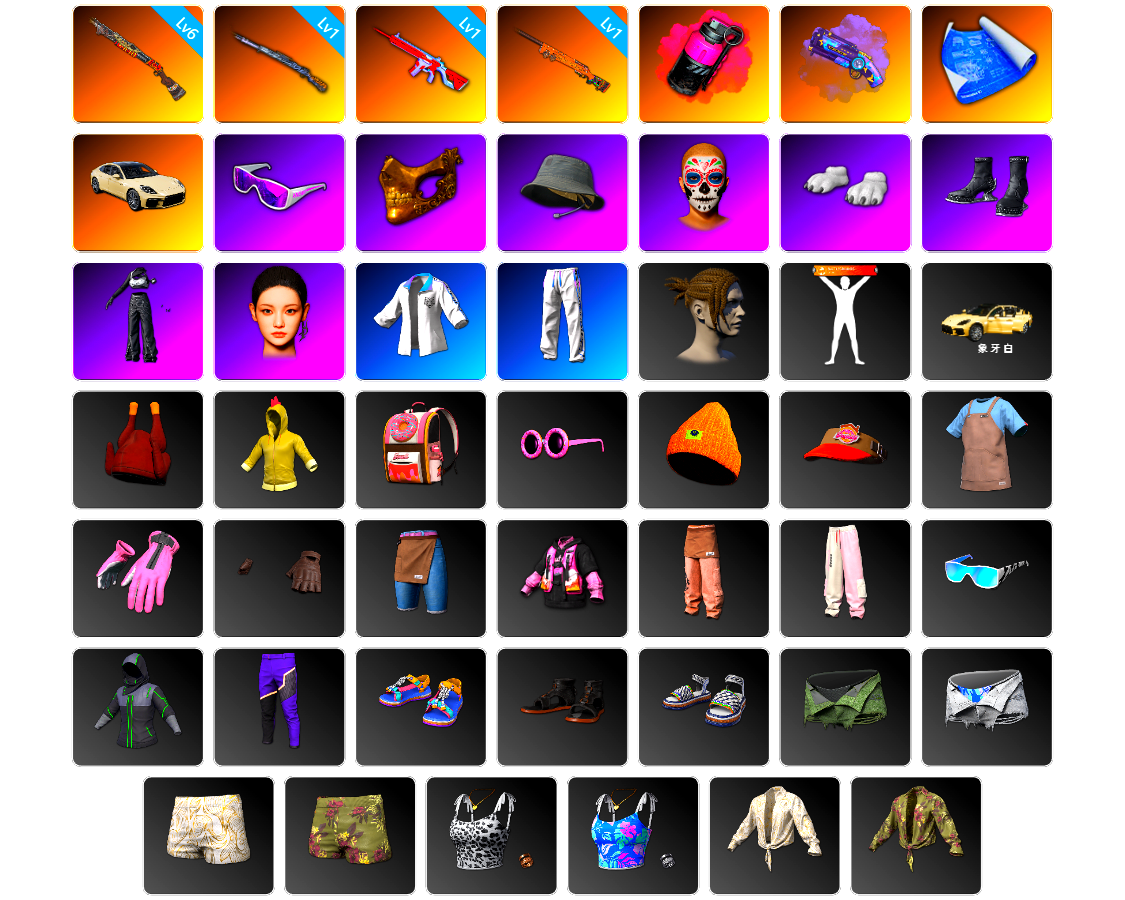 编号LWJ10皮肤:6级烈日灼烧-S1897 1级猛虎98k 1级无信号M4 1级夜曲M24 品红色烟雾弹 张图纸 帕拉梅拉 滑雪镜 金面 渔夫帽 午夜祭典妆容 白熊鞋 aespa女团 宁艺卓 星魂猛虎下山运动夹克 星魂猛虎下山运动裤 脏辫 人型看板 Panamera Turbo S Paint (Eggshell) 火鸡帽子 非鸡连帽卫衣 唯一甜甜圈背包(3级) 暴躁花生墨镜 暴躁花生针织帽 甜甜圈遮阳帽 釉彩甜甜圈衬衫 釉彩甜甜圈手套 甜甜圈手套 甜甜圈短裤 暴躁花生连帽卫衣 暴躁花生长裤 釉彩甜甜圈运动裤 星魂猛虎下山滑雪镜 朱芳芳夹克 PNC 2025 全力出击长裤 日光下澈凉鞋 丝滑夏日凉鞋 漫步沙滩凉鞋 日光下澈丛林短裤 日光下澈热带短裤 丝滑夏日短裤(白色) 丝滑夏日短裤(橄榄绿) 日光下澈丛林上衣 日光下澈热带上衣 丝滑夏日上衣(白色) 丝滑夏日上衣(橄榄绿) 漫步沙滩连衣裙(蓝色) 银色美人飞行员夹克 加油!连帽卫衣 战术科技裤 猎手猫上衣 特工小兔长袖上衣 孤独情人 孤独情人 孤独情人 孤独情人 星际小兔 棉花糖手套 棉花糖短裤 怨恨小姐 轰炸机夹克 棉花蕾丝连衣裙 老奶奶睡裙 光滑丝质睡衣(蓝色) 头号主播 太阳之子电波干扰背包 金墨点染 萨莉3级头 小兔学院 哥特短裙 宁艺卓 天际之眼 潜水教练 - 头盔(3级) 迪厅镜面球 - 头盔(1级) 黄色尖角 - 头盔(2级) 柠檬汁 - 头盔(2级) 游戏日 - 头盔(3级) 赫尔墨斯之翼 - 头盔(3级) 炼狱之角 PNC 2025 全力出击背包(2级) 我的糖果曲奇背包(2级) 重返校园背包(2级) 柯基帮背包(3级) 甜甜圈之家降落伞 银兔猎手降落伞 赛季38竞技降落伞 尽染樱色套装 条纹生存者套装 带刺芬芳套装 牛年服饰套装 2 棕榈叶复古套装 角鲨队吉祥物套装 圣诞老人自拍装套装 守护天使套装1 卡通袭击者套装 角鲨队篮球套装 甜蜜梦境套装 麻辣小龙虾服饰套装 公路战士套装 超级士兵套装 人类猎手套装 正统朋克套装 柴犬慢跑套装 [战场痕迹] 黄道猎手 - M416 数码沙漠迷彩 - M416 山花烂漫 - Beryl M762 魔女之力 - Beryl M762 [战场痕迹] 破碎元素 - AKM 绷带AK 渗透与破坏 - AKM 多彩科技猫 - AUG 金色续响 - AUG 嗜血者 - AUG [战场痕迹] PNC 2025 全力出击 - SCAR-L 疯狂收割者 - SCAR-L 游猎之旅 - M16A4 [战场痕迹] 猩红时刻 - M16A4 华夫饼 - M16A4 分形几何 - QBZ 这不是玩具 - Mk47 Mutant 钴蓝呼号 - G36C 标准猎手 - G36C 方形铬印 - Groza 钴蓝呼号 - K2 [战场痕迹] 赛博危机 - SLR 赛季35竞技黄金 - Lynx AMR [战场痕迹] 剧变熔岩 - SKS [战场痕迹] 破碎元素 - Mini14 孤独情人 - Mk12 雪国风光 - Mk14 无信号 - QBU 致命快递 - 德拉贡诺夫 炽热沙漠 - VSS 赛季36竞技黄金 - AWM 镀金 - AWM G-DRAGON - M24 彩糖蛋糕 - 莫辛纳甘步枪 马桶人 - MP5K 赛季38竞技黄金 - P90 行动时刻 - PP-19 Bizon 游猎之旅 - UMP 熔岩灯 - UMP 熔岩灯 - JS9 回收再利用 - 汤姆逊冲锋枪 抽象派 - MP9 海狼鱼 - Vector 翡翠之刃 - Vector 锁链帮 - Micro UZI 无拘来世 - DP-28 灰色系 - DBS 波涛荡漾 - S686 都市猎手 - P92 丛林潜行者 - P92 沙漠烈阳 - 沙漠之鹰 淡雅之力 - R1895 沙漠烈阳 - P1911 水手 - P18C 指绘撬棍 双色镰刀 妖魔大砍刀 不朽游行 - 铁拳火箭筒 紫色雨滴 - 十字弩 PNC 2025 全力出击 - 平底锅 切割狂潮 - 平底锅 沙滩宝贝美甲配手环 队长的迷彩手套 准备就绪手套 小红帽的手套 小兔快递配送员手套 雪色美人手套 公路战士手套 雪片手套 午夜祭典手套 都市耀光戒指 漫步沙滩手环 PNC 2025 全力出击手套 蓝色闪电手套 豹子精手饰 般若手套 迷人鲜花手链 百叶窗太阳镜(银色) 海洋独行侠墨镜 飞行员太阳镜(琥珀色) 书虫眼镜(棕色) 荣都学者眼镜 优雅夏日眼镜 青花怒放太阳镜 老式太阳镜 都市耀光墨镜 PNC 2025 全力出击护目镜 日光下澈墨镜 小红帽的伤痕 匕首纹饰加红晕妆容 夏日之星妆容 女性面容11 邓肯·斯莱德 男性面容18 漫步沙滩妆容 发型44 发型45 发型46 发型20 发型93 发型91 发型89 发型63 发型87 发型85 PNC 2023 背包(2级) PCS1 背包(1级) 神枪手背包(1级) 朱莉的潜行者背包(1级) 圣柱军团保安 - 头盔(1级) 恐龙乐园 “丽芙” 面具 雪人头套 驯鹿的红鼻子 夏日渔夫帽(蓝绿色) 准备就绪鸭舌帽 黑色绒线帽和耳机 小飞鸡脖枕 赛博小兔发带 滑雪帽 午夜祭典帽子 垂钓大师渔夫帽 露鳍鲨鱼渔夫帽 豹子精渔夫帽 “熊宝贝”睡眠眼罩 准备就绪口罩 队长的迷彩面巾 极限追逐者面具 劫掠者面具 PGC 2022 战术科技面罩 沙暴伪装丝巾 豹子精面具 九尾狐面具 坚持到底面巾 狂野姿态上衣 月光游牧者上衣 奶牛印花夹克(黑色) 绗缝夹克 邓肯的潜行者夹克 花衬衫(蓝绿色) 夏日短裤(灰色) PCS4 金意挥洒运动衫 狂热爱恋夹克 链接迷彩夹克 海洋小姐上衣 雪色美人夹克 生存练习生连帽卫衣 可爱喵喵旗袍 暗影特战背心 兴致索然夹克 邓肯的马甲背心 沙滩宝贝操作员上衣 坚持到底上衣 萨迪娅的战斗服 暗夜兔女郎紧身衣 骷髅脸特技服 T 恤 (白色) T 恤 (灰色) 太空小动物连帽卫衣 PGC 2023 女皇的外套 午夜祭典上衣 潜行连帽卫衣 雪地迷彩夹克 月光游牧者夹克 都市耀光夹克 PNC 2025 夹克 豹子精夹克 烤鸡节紧身裤 准备就绪长裤 不毛之地长裤 战术护膝长裤 邓肯的运动裤 坚持到底长裤 链接迷彩裤 战斗裤 (棕色) 战斗裤 (卡其色) 狂欢小队战术长裤 寄情尼罗河短裤 小小鸡仔短裤 皇室摔跤手短裤 太阳花瓣牛仔短裤 沙滩宝贝短裤 极限追逐者短裤 无重力中型长裤 海洋小姐短裙 雪地工装裤 午夜祭典短裤 狂野姿