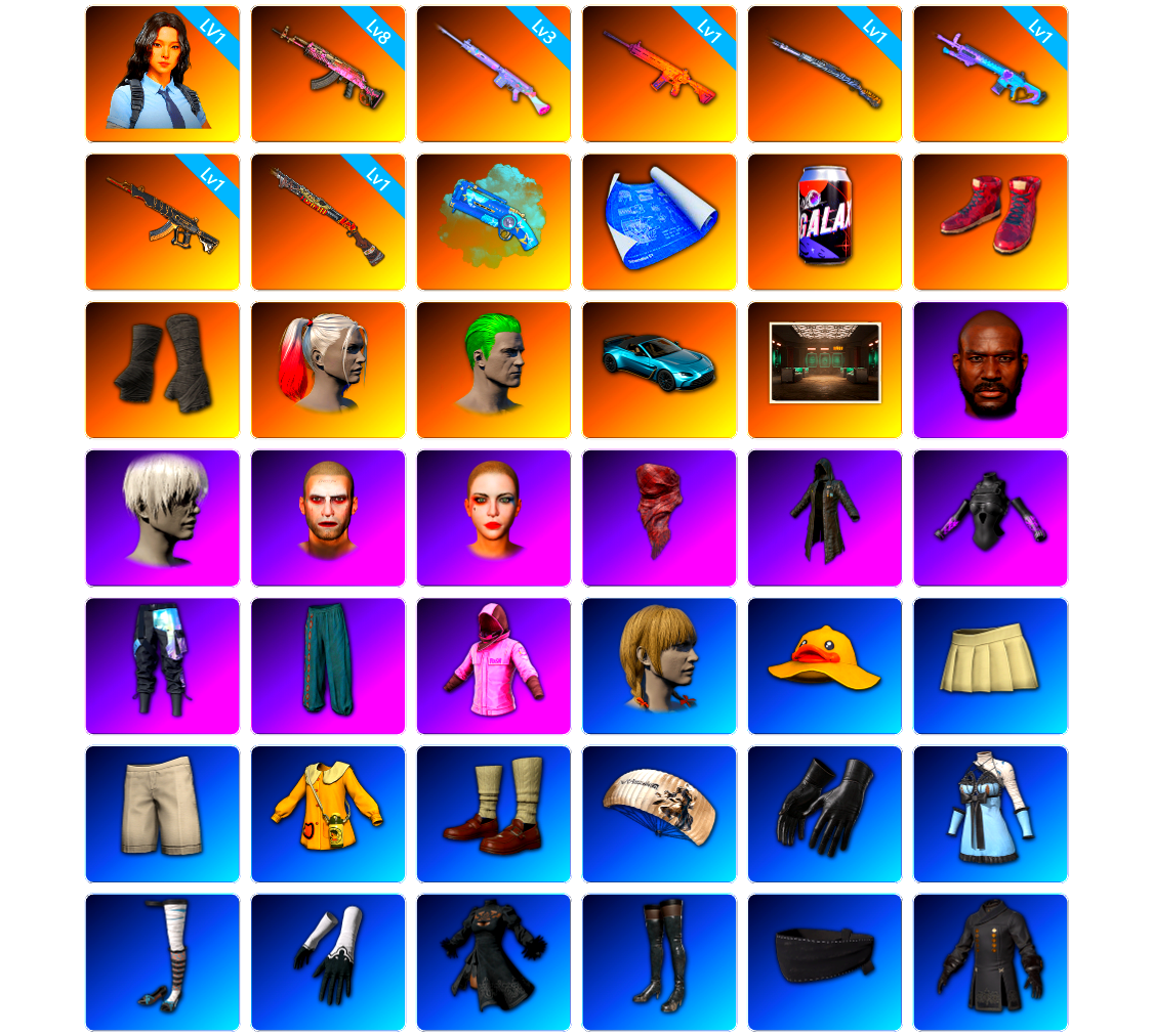 编号PZ2655皮肤:1级瀚娜 8级火麒麟 3级玩偶炮 1级南瓜M4 1级猛虎98k 1级魔咒之力Mk12 1级妖魔之触ACE 1级烈日灼烧-S1897 蓝色魔法迷雾-M79 张图纸 劲爆蓝莓 柏林鞋 黑绷带 小丑女 小丑男 马丁敞篷跑车 交易所接待室 黑鬼 9s发型 丑男妆容 丑女妆容 红面巾 黑大衣 发光手臂 竞猜裤 萨芬裤 粉战神 小黄鸭 尼尔 拉风龙 车漆 Number 小马尾 塞伯鲁斯 丸子头 发型21 西游记 发型56 发型77 发型41 青海摇 人型看板 火鸡帽子 朱芳芳手套 朱芳芳夹克 朱芳芳长裤 朱芳芳女仆裙 1级包 3级包 电波干扰背包 德拉贡诺夫 铁拳火箭筒 平底锅 PNC 2025 战术科技上衣 PNC 2025 全力出击长裤 PNC 2025 全力出击夹克 PNC 2025 战术科技长裤 战术女仆 PNC 2025 战术科技运动鞋 PNC 2025 全力出击运动鞋 日光下澈凉鞋 丝滑夏日凉鞋 漫步沙滩凉鞋 日光下澈丛林短裤 日光下澈热带短裤 丝滑夏日短裤(白色) 丝滑夏日短裤(橄榄绿) 日光下澈丛林上衣 日光下澈热带上衣 丝滑夏日上衣(白色) 丝滑夏日上衣(橄榄绿) 漫步沙滩连衣裙(棕色) 漫步沙滩连衣裙(蓝色) 哈莉·奎茵「老爸的小怪物」服饰 零度机能风 4周年纪念小队标签连帽卫衣 闪亮运动裤 紫色运动裤 鳄鱼大军泳裤 猎手猫短裙 猎手猫皮鞋 特工小兔长袖上衣 特工小兔长裤 钟楼魔女 小队队长 小队队长 银河系女孩 银河系女孩 慌乱女仆 棉花糖短裤 棉花糖鞋 恐龙乐园 恐龙乐园 柴犬帮 宝贝外面冷 宝贝外面冷 宝贝外面冷 宝贝外面冷 怨恨小姐 怨恨小姐 怨恨小姐 怨恨小姐 棉花蕾丝绒 棉花蕾丝连衣裙 上校的渔夫帽 上校的夹克 奶牛印花绑结式上衣(棕色) 奶牛印花绑结式上衣(黑色) 先驱战队 先驱战队 PGI.S 太阳之子电波干扰背包 泡吧达人 小恶魔纹身 蜘蛛纹身 开拓者墨镜 强袭者上衣 萨莉的长靴 萨莉3级头 小兔航天局 小兔航天局 小兔航天局 小兔航天局 小兔航天局 小兔航天局 探月者 小兔学院 绒毛小恶魔短裙 兔兔也朋克腿套 敏蒂的发箍 敏蒂的上衣 曼蒂的发箍 Magic Magic 曼迪2级包 曼迪3级包 悲喜 7周年快乐! 万圣节大奖 天际之眼 朱莉 流水线 均衡器 热恋中的 PNC 2025 全力出击 - 头盔(2级) 潜水教练 - 头盔(3级) B.Duck - 头盔(1级) B.Duck - 头盔(2级) B.Duck - 头盔(3级) 斗牛犬之怒 - 头盔(1级) 7周年快乐 - 头盔(1级) 狂人的摩托车 - 头盔(1级) Carbon Fiber Commando - Helmet (Level 2) Vikendi Varsity - Helmet (Level 2) 小狗耳朵 - 头盔(2级) 流光溢彩 得意门生 - 头盔(2级) 圣诞型男 - 头盔(3级) 8th Anniversary - Helmet (Level 3) 炼狱之角 锦鲤相伴 - 头盔(3级) “熊宝贝” - 头盔(3级) PNC 2025 全力出击背包(2级) PNC 2025 战术科技背包(3级) 来自乐园的问候背包(3级) 汪汪伙伴背包(1级) 柴犬帮背包(1级) 汪汪伙伴背包(2级) 春之野鹤背包(2级) PGI.S 紫色棱镜背包(3级) 7周年快乐背包(3级) 甜蜜梦境背包(3级) 汪汪伙伴背包(3级) 夏日远足背包(3级) PGC 2023 皇冠宝石背包(3级) 柯基帮背包(3级) 炼狱之角背包(2级) 废土拾荒者背包(3级) 上校的降落伞 Vikendi Varsity Parachute 踏浪而行降落伞 无重力降落伞 赛季31竞技降落伞 赛季28竞技降落伞 赛季30竞技降落伞 赛季29竞技降落伞 赛季25竞技降落伞 赛季27竞技降落伞 烈焰吐息降落伞 赛季26竞技降落伞 银兔猎手降落伞 赛季11竞技降落伞 3周年纪念降落伞 雪花 蒸汽之翼降落伞 妖魔横行降落伞 乐园的问候 36赛季 太阳之子降落伞 烤鸡节服饰套装 3 咖啡王制服套装 北极熊套装 灭世朋克套装 禁忌闪光套装 卡通袭击者套装 彩色标记套装 突围而出套装 生存者车手服饰套装 聚星女士套装 类星之王套装 LOS LEONES 客场队服套装 EL POZO 客场队服套装 LOS LEONES 主场队服套装 PCS3 服饰套装 皇室套装 肌肉套装 朱莉的夹克套装 狂人的连衣裤套装 马尔霍特拉的夜行套装 慵懒假日套装 美美的睡衣套装 维娜托套装 铁血警官套装 正统朋克套装 朋克摇滚套装 棕熊猎人套装 沙滩兄弟套装 PNC 2024 套装 1 晚秋-M416 无慈悲 - M416 4周年纪念光谱渐变 - M416 雪国风光 - M416 蟒蛇花园 - M416 [战场痕迹] 金色落叶 - M416 数码沙漠迷彩 - M416 [战场痕迹] 小兔巡逻队 - M416 PGC 2022 王牌登场 - Beryl M762 [战场痕迹] 黄金齿轮 - Beryl M762 [战场痕迹] 湮灭 - Beryl M762 鎏金王朝 - Beryl M762 [战场痕迹] 青花之力 - Beryl M762 橘子灰碳 - Beryl M762 魔女之力 - Beryl M762 精巧机械 - AKM 金色落叶 - AKM 鲜花之力 - AKM 标准猎手 - AKM 大理石宝藏 - AKM 钞能力 - AKM 奥丁的先锋 - AKM 竞速之道 - AKM 带刺之美 - AKM 金色续响 - AUG [战场痕迹] 进军亚特兰蒂斯 - AUG 别挡兔 - AUG 宝贝外面冷 - ACE32 分形碎片 - ACE32 [战场痕迹] PNC 2025 全力出击 - SCAR-L 疯狂收割者 - SCAR-L 三重彩 - SCAR-L 游猎之旅 - M16A4 银河卫士 - M16A4 [战场痕迹] 朱雀之灵 - M16A4 [BATTLESTAT] Abracadabra Automatic - QBZ 分形几何 - QBZ 鎏金王朝 - QBZ 袜中好礼 - QBZ 淡雅之力 - Mk47 Mutant 金色落叶 - Mk47 Mutant 灵魂枷锁 - Mk47 Mutant 这不是玩具 - Mk47 Mutant Blue Magic Blaster - G36C 分形几何 - G36C 无尽迷宫 - Groza [战场痕迹] 精致冥王 - Groza 镀金 - Groza 皇家舰队 - K2 淬火真金 - K2 无慈悲 - K2 [战场痕迹] 瓦尔哈拉 - SLR 水手 - SLR 彩虹之上 - SLR 卡拉金瑰宝 - SLR 魔力宝贝 - SLR 赛季35竞技黄金 - Lynx AMR [战场痕迹] PNC 2025 战术科技 - SKS [战场痕迹] 夺目寒光 - SKS 金色落叶 - SKS 奥丁的先锋 - SKS 分形几何 - SKS 数码丛林迷彩 - SKS 镀金 - SKS 死亡六进制 - Mini14 数码沙漠迷彩 - Mini14 热浪 - Mk12 幽灵之