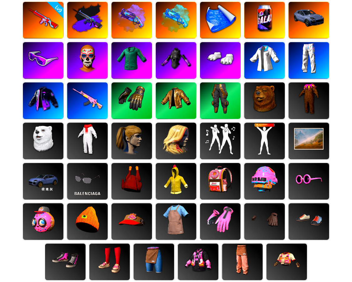 编号LWD972皮肤:9级无信号M4 无信号M4(异色) 紫色魔法迷雾-M79 蓝色魔法迷雾-M79 张图纸 劲爆蓝莓 保时捷卡宴 滑雪镜 午夜祭典妆容 活动绿东 发光手臂 白熊鞋 星魂猛虎下山运动夹克 星魂猛虎下山运动裤 飞行员夹克 阿狸 拉风龙 杂技熊头套 杂技熊玩偶服 北极熊头套 北极熊连身衣 小马尾 发型56 青海摇 人型看板 零度计划 Cayenne Turbo GT Paint (Arctic Grey) 巴黎世家透明方形墨镜 火鸡帽子 非鸡连帽卫衣 唯一甜甜圈背包(3级) 果酱甜甜圈 - 头盔(3级) 暴躁花生墨镜 釉彩甜甜圈面具 暴躁花生针织帽 甜甜圈遮阳帽 釉彩甜甜圈衬衫 釉彩甜甜圈手套 甜甜圈手套 釉彩甜甜圈运动鞋 暴躁花生运动鞋 甜甜圈运动鞋 甜甜圈短裤 暴躁花生连帽卫衣 暴躁花生长裤 甜甜圈上衣 釉彩甜甜圈运动裤 星魂虎虎生威背包(3级) 星魂虎虎生威平底锅 星魂猛虎下山滑雪镜 漫步沙滩凉鞋 漫步沙滩连衣裙(棕色) 漫步沙滩连衣裙(蓝色) 斑斓危机 圣诞老人 猎手猫上衣 霓虹军团 霓虹军团 霓虹军团 霓虹军团 霓虹军团 孤独情人 绒毛伙伴 绒毛伙伴 绒毛伙伴 绒毛伙伴 极光之友 极光之友 蓄势待发 蓄势待发 柴犬帮 柴犬帮 维娜托手套 维娜托口罩 维娜托水手 维娜托短裙 维娜托短靴 怨恨小姐 缤纷混沌连帽卫衣 缤纷混沌 绒汪汪 紫喵喵手套 紫喵喵卫衣 紫喵喵长裤 紫喵喵短靴 维寒迪雪上运动夹克 维寒迪长裤 绸缎睡裤 光滑丝质睡衣(蓝色) 圣诞之子夹克 圣诞之子长裤 快乐冬眠蝴蝶结短裤 薄荷巧克力 薄荷巧克力 薄荷巧克力 薄荷巧克力 头号主播 开拓者墨镜 开拓者手套 开拓者上衣 开拓者长裤 开拓者夹克 开拓者短鞋 萨莉的长靴 萨莉的礼服 萨莉的皮鞋 萨莉2级头 小兔航天局 小兔航天局 小兔航天局 小兔航天局 小兔航天局 小兔学院 绒毛小恶魔夹克 兔兔也朋克腿套 发型60 万圣之夜 流水线 女巫的黑暗仪式 迪斯科舞会 黄色尖角 - 头盔(2级) 夹心软糖 - 头盔(2级) 迪厅镜面球 - 头盔(3级) “熊宝贝” - 头盔(3级) 汪汪伙伴背包(1级) 汪汪伙伴背包(2级) 王牌登场 沙滩风情背包(3级) 恐龙乐园时尚背包(1级) 汪汪伙伴背包(3级) PGC 2023 皇冠宝石背包(3级) 甜甜圈之家降落伞 赛季31竞技降落伞 彩色标记降落伞 公路王牌降落伞 泰索尼克降落伞 [战场痕迹] 湮灭 - Beryl M762 蟒蛇花园 - AKM 金色续响 - AUG 大理石宝藏 - ACE32 G-DRAGON - SCAR-L 灵魂枷锁 - Mk47 Mutant Blue Magic Blaster - G36C 山花烂漫 - Groza 雪花 - K2 [战场痕迹] 漫彩四溢 - SLR 糖霜乐园 - SKS 孙悟空 - Mk14 斑点狗 - VSS 蟒蛇花园 - QBU 璀璨星光 - QBU [战场痕迹] 猩红漫彩 - 德拉贡诺夫 PNC 2023 完美角度 - Kar98k 鲜花之力 - AWM 猪八戒 - AWM [战场痕迹] 湮灭 - M24 无拘来世 - 莫辛纳甘步枪 疯狂收割者 - MP5K 竞速之道 - P90 方形铬印 - PP-19 Bizon 彩虹之上 - UMP 熔岩灯 - JS9 抽象派 - MP9 抽象派 - Vector 圣诞之力 - DP-28 无信号 - Micro UZI 冲锋枪 爬行者之印 - M249 双色 - DBS 海藻自己上 - O12 丛林潜行者 - 锯短型霰弹枪 锁链帮 - S12K 抽象派 - S1897 华夫饼 - S686 三重彩 - P92 三重条纹 - 沙漠之鹰 淡雅之力 - R1895 愉悦的绿松色 - P1911 圣诞之力 - P18C 朋克战斧 暗黑断罪之剑 不朽游行 - 铁拳火箭筒 甜蜜外衣 - 十字弩 8th Anniversary - Pan 赛博小兔手套 小兔学院水手服手套 类星之王的手套 队长的迷彩手套 战场老兵手套 准备就绪手套 铁血警官的手套 维寒迪雪上运动手套 蓝仙女手套 街头律动手套 午夜祭典手套 都市耀光戒指 漫步沙滩手环 豹子精手饰 无重力重型手套 PNC 2024 手套(红色) 百叶窗太阳镜(银色) 红桃皇后墨镜 乔纳森的猎人墨镜 精致的眼镜 卡拉金本土墨镜 时髦墨镜(红色) 神枪手飞行员太阳镜 炫酷蓝色墨镜 沙漠骗徒护目镜 无重力重型护目镜 都市耀光墨镜 卧底助理眼镜 美人鱼妆容 马戏团之星妆容 女性面容16 女性面容19 漫步沙滩妆容 发型66 马戏团之星发型 美人鱼发型 发型58 发型53 发型31 治安队发型 发型26 发型93 发型64 发型83 执法官背包(3级) 艾伦格零度计划背包(3级) 皮革背包(2级) 陈旧皮革背包(2级) 小熊觉醒背包(2级) 优雅夏日背包(1级) 一夜好眠背包(1级) 破碎硬壳背包(1级) 马桶人 - 头盔(3级) 呆萌咕噜眼 - 头盔(2级) 伴羊入梦 - 头盔(2级) Porsche Offtrack - Helmet (Level 1) 驯鹿的红鼻子 角鲨队吉祥物头套 小木偶帽子 缎带草帽(蓝色) 准备就绪鸭舌帽 队长的迷彩鸭舌帽 海洋小姐贝雷帽 同花大顺贝雷帽 卡通袭击者针织帽 香寒发箍 赛博小兔发带 滑雪帽 垂钓大师渔夫帽 雪域迷踪头套 监控人头套 午夜祭典帽子 豹子精渔夫帽 圣诞之子针织帽 1000 SPF 防晒帽 治安队面具 恶魔的微笑口罩 准备就绪口罩 街头律动口罩 月之影面罩 PGC 2023 帝皇的荆棘面具 小木偶面具 缤纷混沌面具 卡通袭击者眼罩 队长的迷彩面巾 朋克预备生口罩 铁血警官的面罩 圣诞快乐围巾 冰魇口罩 沙暴伪装丝巾 豹子精面具 黄铜鸟嘴医生面具 炫酷反光夹克 高档夹克 街头律动夹克 准备就绪夹克 破裂棱镜夹克 朋克公主上衣 天空队长夹克 巨龙之母服饰 治安队外套 雪片夹克 战场老兵夹克 夏日花开紧身衣 赫尔墨斯之翼夹克 美人鱼服饰 野猫连帽卫衣 小小鸡仔外套 圣诞派对夹克 红桃皇后洋裙 可爱喵喵旗袍 沙漠骗徒上衣 西装上衣(棕色) 黑龙长款大衣 铁血警官的制服 红白方格泳衣(红色) 卡通袭击者上衣 战场老兵紧身马甲 沙漠骗徒风衣 朋克预备生毛衣 太阳花瓣露脐装 小木偶羊毛衣 