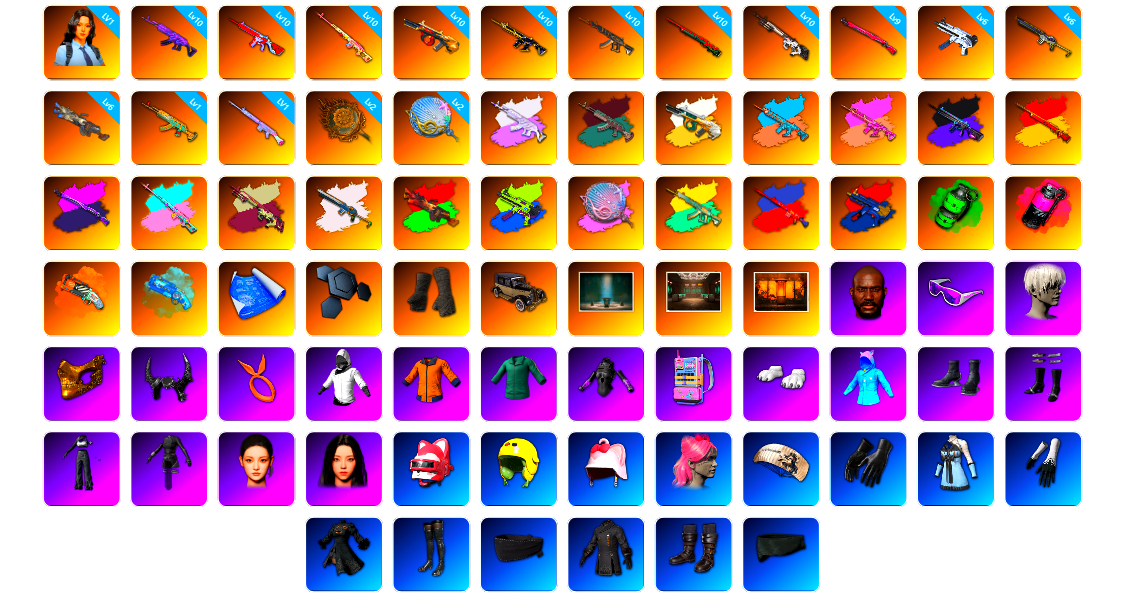 | 成长武器 | 水麒麟762 赛博MK12 玩偶大炮 孙悟空M24 猪八戒M4 唐三藏锅 沙悟净Mini 粉梦长眠德拉贡 无信号M416 无重力 午夜惊魂98K 刻耳柏洛斯M249 美杜莎M762 弥诺陶洛斯AUG 塞壬平底锅 妖魔之触ACE |