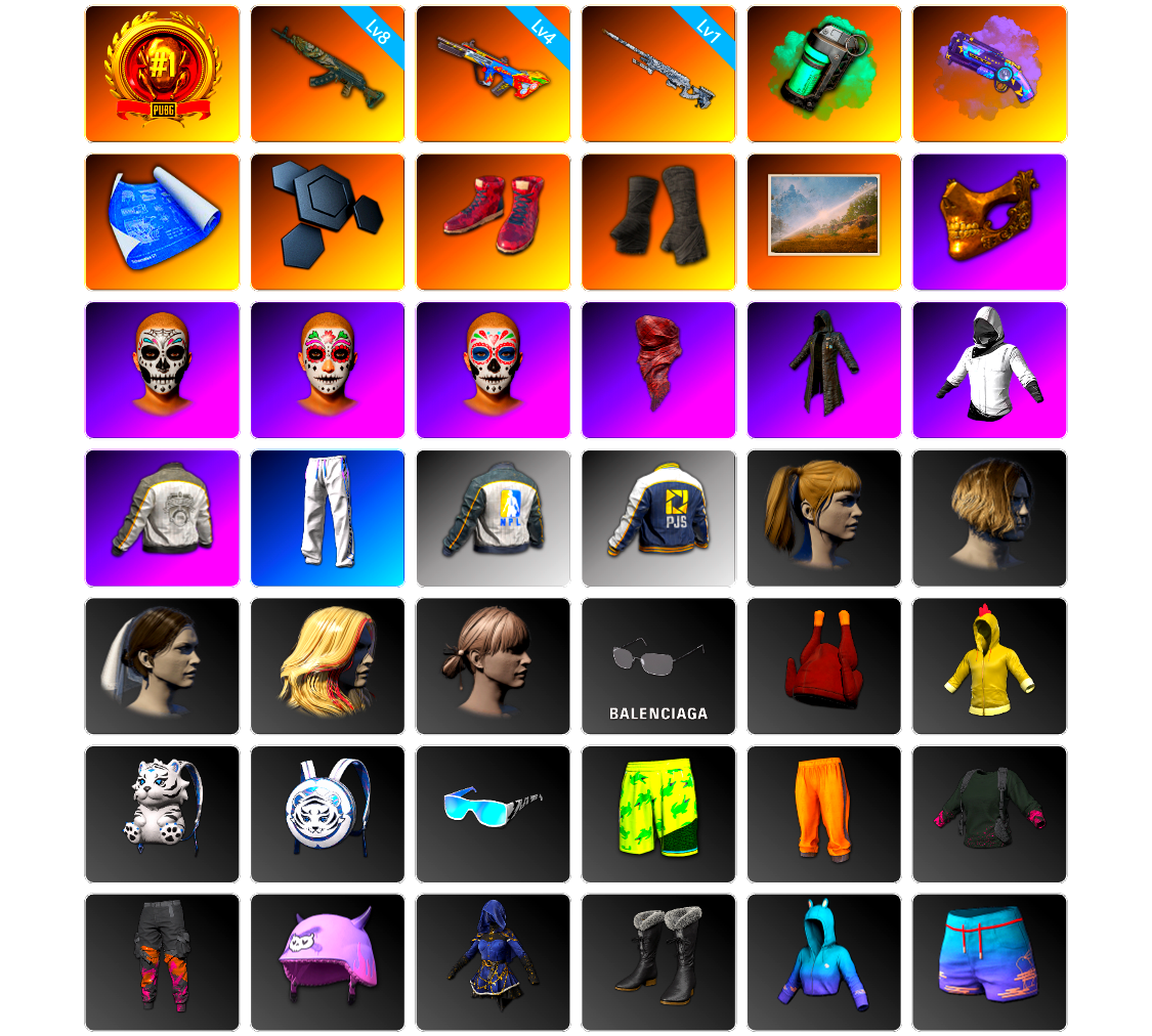 编号LZW1674皮肤:今晚吃鸡金 8级青龙762 4级爆裂AUG 1级幽影残魂AWM 青色烟雾弹 紫色魔法迷雾-M79 张图纸 聚合物 柏林鞋 黑绷带 零度计划 金面 亡灵律动妆容 万寿菊狂欢妆容 午夜祭典妆容 红面巾 黑大衣 白战神 PML夹克 星魂猛虎下山运动裤 NPL夹克 PJS夹克 小马尾 发型21 萨迪娅的头纱 发型56 发型77 巴黎世家透明方形墨镜 火鸡帽子 非鸡连帽卫衣 星魂虎虎生威背包(3级) 星魂虎虎生威背包(2级) 星魂猛虎下山滑雪镜 鳄鱼大军泳裤 工作裤 特工小兔长袖上衣 特工小兔长裤 钟楼魔女 银河系女孩 银河系女孩 极光之友 极光之友 恐龙乐园 维寒迪雪上运动夹克 老奶奶睡裙 先驱战队 先驱战队 先驱战队 先驱战队 先驱战队 先驱战队 先驱战队 先驱战队 先驱战队 先驱战队 OGBG 纹身 群雄逐鹿 开拓者上衣 魔力甜心萨莉的礼服(粉红色) 小兔航天局 小兔学院 7周年快乐! 亲爱的... 把钱交出来 双狼成行 坏蛋小蜜蜂 7周年快乐 - 头盔(1级) 赫尔墨斯之翼 - 头盔(3级) 8th Anniversary - Helmet (Level 3) “熊宝贝” - 头盔(3级) 34赛季伞 赛季33竞技降落伞 泰索尼克降落伞 赛季38竞技降落伞 马桶人降落伞 拉拉队套装 类星之王套装 蟒蛇之帽套装 狂人的连衣裤套装 绗缝套装 圣诞型男套装 绒毛伙伴套装 [战场痕迹] 黄道猎手 - M416 破冰者 - Beryl M762 山花烂漫 - Beryl M762 礼物环绕 - Beryl M762 带刺之美 - AKM 渗透与破坏 - AKM 金色续响 - AUG 钟楼魔女贝拉 - ACE32 亡灵之花 - SCAR-L 银河卫士 - SCAR-L 甜蜜外衣 - M16A4 [BATTLESTAT] Abracadabra Automatic - QBZ 鎏金王朝 - QBZ 心跳掠夺者 - Mk47 Mutant 分形几何 - G36C 方形铬印 - Groza 雪花 - K2 淬火真金 - K2 皇家舰队 - K2 水手 - SLR [战场痕迹] 猛虎猎手 - SLR 魔力宝贝 - SLR 赛季35竞技黄金 - Lynx AMR [战场痕迹] 黄道猎手 - SKS 金色落叶 - SKS 镀金 - SKS 数码沙漠迷彩 - Mini14 PGC 2023 皇冠宝石 - Mk12 红桃同花 - Mk12 孙悟空 - Mk14 海洋哑光(蓝色) - VSS 花呢控 - VSS 标准猎手 - VSS 亡灵之花 - 德拉贡诺夫 这个夜晚不太静 - 德拉贡诺夫 余音环绕 - 十字弩 镀金 - Win94 无慈悲 - Kar98k 礼物环绕 - Kar98k 鲜花之力 - AWM 猪八戒 - AWM [战场痕迹] 湮灭 - M24 无拘来世 - 莫辛纳甘步枪 马桶人 - MP5K 唐三藏 - FAMAS 竞速之道 - P90 沙悟净 - P90 破冰者 - UMP 熔岩灯 - UMP 海藻来帮忙 - UMP 水手 - 汤姆逊冲锋枪 拼图 - 汤姆逊冲锋枪 心跳掠夺者 - MP9 灵魂枷锁 - Vector 渗透与破坏 - Vector 精制风神 - Vector 镀金 - Vector 精致赫尔墨斯 - Micro UZI 三重彩 - Micro UZI 马桶人 - M249 幽灵之握 - DBS 海藻自己上 - O12 丛林潜行者 - 锯短型霰弹枪 都市猎手 - 锯短型霰弹枪 [战场痕迹] 无信号 - S12K 淡雅之力 - S1897 灵长类 - S1897 毒性 - S1897 Winter Reign - S686 波涛荡漾 - S686 丛林潜行者 - P92 恶战 - P92 三重彩 - P92 百搭牌 - R45 数码沙漠迷彩 - P18C 锯背大砍刀 陶土质感大砍刀 PUBG信条钢管 战术斧头 朋克战斧 守墓者手杖 黑色金属 - 平底锅 妖魔大砍刀 7周年快乐 - 平底锅 8th Anniversary - Pan 海洋独行侠手套 赛博小兔手套 7周年快乐手套 天空队长手套 准备就绪手套 维寒迪雪上运动手套 虚空女巫手套 Lawless Lookout Gloves 金底耐磨手套 女明星眼镜(黑色) 精致的眼镜 PGC 2021 黑暗凝视妆容 喜极而泣眼影 夏日之星妆容 萨迪娅·库雷希 男性面容7 拉万 午餐肉 扭曲追随者妆容 漫步沙滩妆容 发型54 绯红新星的发型 发型47 美人鱼发型 发型45 发型20 发型94 发型89 发型83 发型63 寒锋背包(3级) 火山灰烬背包(3级) 艾伦格零度计划背包(3级) Porsche Socialite Backpack (Level 3) 猩红猎手背包(2级) 锦鲤随行背包(2级) 皮革背包(2级) 小熊觉醒背包(2级) 彩绘祭坛背包(2级) 马桶人背包(2级) 搁浅驾驶员背包(2级) 勇往直前背包(1级) 游戏日背包(1级) 维寒迪雪上运动背包(1级) 光彩夺目皮革背包(1级) 独行侠背包(1级) 战术泰迪熊 - 头盔(3级) 高压 - 头盔(3级) 暗黑朋克 - 头盔(3级) 马桶人 - 头盔(3级) 都市丛林 - 头盔(3级) 马桶人 - 头盔(2级) 噬命雏菊 - 头盔(2级) 维寒迪雪上运动 - 头盔(1级) 暗黑朋克 - 头盔(1级) 锦衣夜行斗笠 准备就绪鸭舌帽 小兔快递制服鸭舌帽 搁浅驾驶员鸭舌帽 沙滩流浪者饮料盔帽 Lawless Lookout Beanie 1000 SPF 防晒帽 可爱小猫咪口罩 准备就绪口罩 PGC 2023 女皇的金色面具 历战骑士头盔 美美的睡眠眼罩 寻腥猎犬嘴套 冰魇口罩 沙暴伪装丝巾 准备就绪夹克 午餐肉的连帽卫衣 我的闪耀时刻连帽夹克 水色突击夹克 蟒蛇吐信T恤 朋克摇滚上衣 狂热爱恋夹克 虚空女巫外套 搁浅驾驶员马甲 龙年大吉连帽卫衣 小兔快递仓管连帽卫衣 生存练习生连帽卫衣 学院派上衣 PUBG信条马甲 兴致索然夹克 7周年快乐夹克 衬衫 (灰色) 神枪手战术护肩外套 T 恤 (白色) T 恤 (灰色) 沙滩流浪者长袖运动衫 龙年大吉上衣 锦衣夜行装束 柴犬慢跑T恤 Horse King的老虎T恤 雨中漫步夹克 Lawless Lookout Top Lawless Lookout Jacket 雪地迷彩夹克 暗影突袭者夹克 朋克摇滚长裤 叛逆精神牛仔裤 午餐肉的短裤 骑师长裤 准备就绪长裤 军用裤子 水色突击长裤 龙年大吉迷彩长裤 西装裤子(黑色) 神枪手战斗裤 战斗裤 (棕色) 战斗裤 (卡其色) 搁浅驾驶员长裤 牛仔裤 (棕褐色) 小兔快递仓管短裤 虚空女巫短裙 皇室摔跤手短裤 7周年快乐短裙 大灰狼的牛仔裤 我的闪耀时刻短裙 Lawless Lookout Pants 雪地工装裤 监控人长裤 Horse King的老虎短裤 沙滩流浪者工装短裤 暗影突袭者长裤 杂技熊脚套 花式皮鞋(白色) 